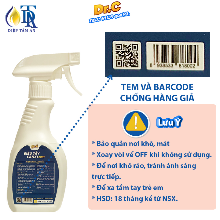 Mua tại Tiktok*CÔNG DỤNG:Tẩy Cặn Canxi Nhà Tắm,Tẩy Vách Kính Vòi Sen Inox,Tẩy Ố Vàng Nhà Vệ Sinh Lavabo- Plus Dr.C 300ml: - Tẩy cặn canxi nhà tắm : Ố mốc vẩy cá, đốm trắng cặn canxi bám trên vòi sen inox, cabin, vách kính, bồn rửa mặt,bồn tắm, thiết bị phòng tắm và bồn rửa bát Inox 304 trở lên