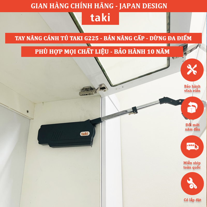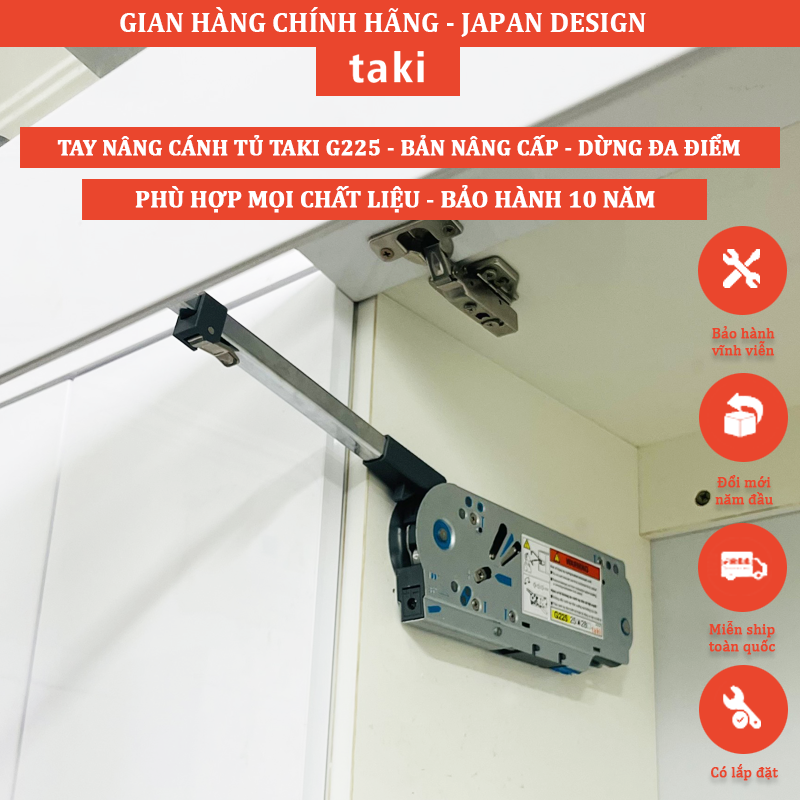 Tay nâng phù hợp với nhiều chất liệu tủ như nhôm, khung kính, gỗ, sử dụng cho tủ bếp, tủ áo …Tay nâng được tích hợp nhiều chức năng điều chỉnh cánh lên – xuống, sang trái – sang phải, điều chỉnh độ lệch giữa 2 cánh, điều chỉnh, điều chỉnh khe hở giữa 2 cánh, nhằm đáp ứng linh hoạt các nhu cầu sử dụng của gia đình.