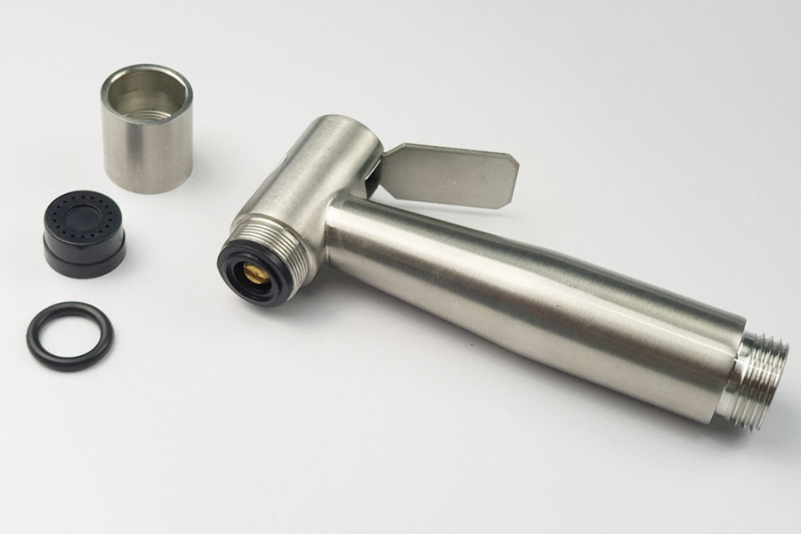 Tay xịt được sản xuất với chất liệu Inox SUS 304 không han rỉ, không dính kết vết bẩn. Vật liệu đạt tiêu chuẩn chất lượng Châu Âu, không bong tróc lớp xi mạ theo thời gian.