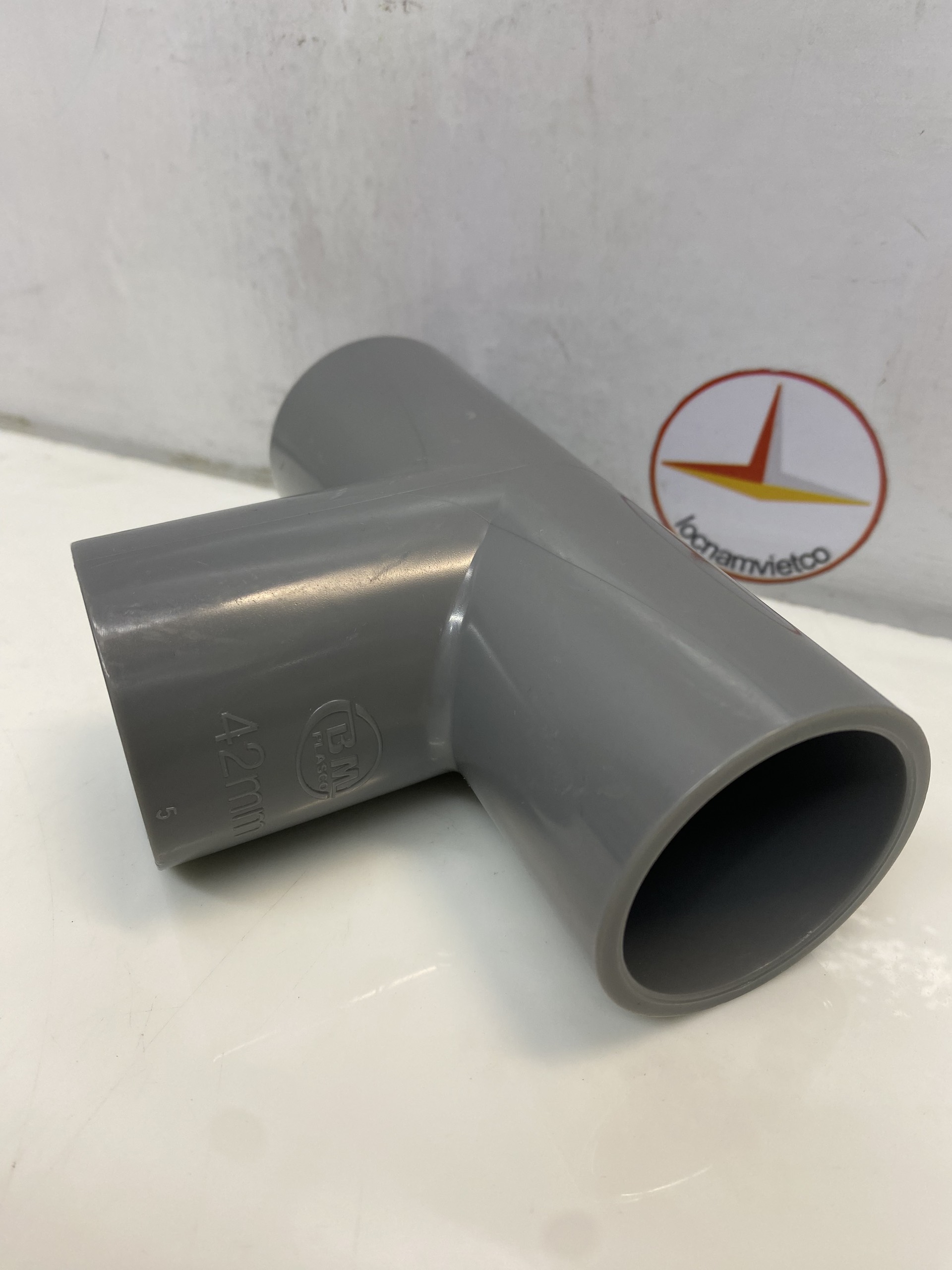 Mua tại TiktokTê 42 nhựa PVC Bình Minh(Tee)_T42 T có nhiều nơi còn gọi là chữ Tê, Tê vuông góc, ngã 3 (tiếng anh Tee) dùng chia nước ra thêm 1 hướng vuông góc 90 độ của ống đang đi sẵn. Đặc Điểm: