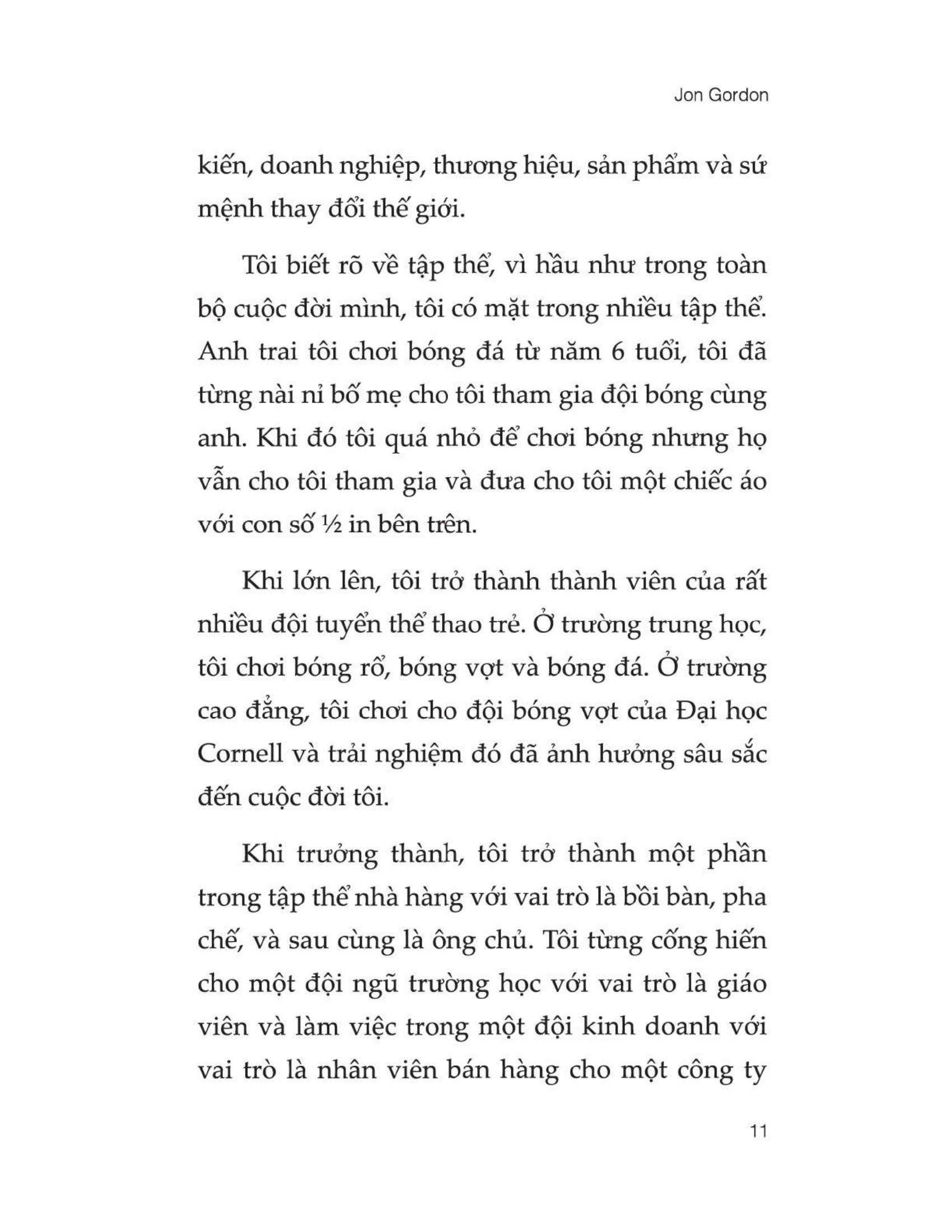 Teamwork - Kỹ Năng Làm Việc Nhóm Chuyên Nghiệp Teamwork là một trong những kỹ năng cần thiết và quan trọng nhất đối với mỗi người. Đây là kỹ năng chỉ quá trình phối hợp, tương tác và cộng tác giữa hai hoặc nhiều người trong cùng một tổ chức. Bằng cách phân chia công việc chung thành những phần việc nhỏ, mỗi người sẽ đảm nhận một nhiệm vụ đúng với chuyên môn, thế mạnh của bản thân và đảm bảo cùng thực hiện một mục tiêu chung, cùng hoàn thành công việc nhanh chóng, hiệu quả. “Muốn đi nhanh hãy đi một m.ình, muốn đi xa hãy đi cùng nhau”. Không ai có thể một m.ình làm nên điều vĩ đại. Có một sự thật rằng, đằng sau những điều vĩ đại đều có công sức của cả một tập thể tích cực làm việc và cống hiến tận tâm. Tác giả Jon Gordon cho rằng để đạt được mục tiêu chung, những thành viên trong cùng một tập thể phải biết kiến tạo và chia sẻ tầm nhìn, sứ mệnh, làm việc với nhau dựa trên niềm tin, sự tích cực, tinh thần lạc quan; trao cho nhau sự kết nối, cam kết và quan tâm. Bạn có thể tận dụng toàn bộ những nền tảng, lời gợi ý và các câu chuyện trong cuốn sách Teamwork – Kỹ năng làm việc nhóm chuyên nghiệp để khiến bản thân trở nên tuyệt vời và biến nhóm của m.ình trở thành một tập thể vĩ đại. Cuốn sách trợ giúp chúng ta: