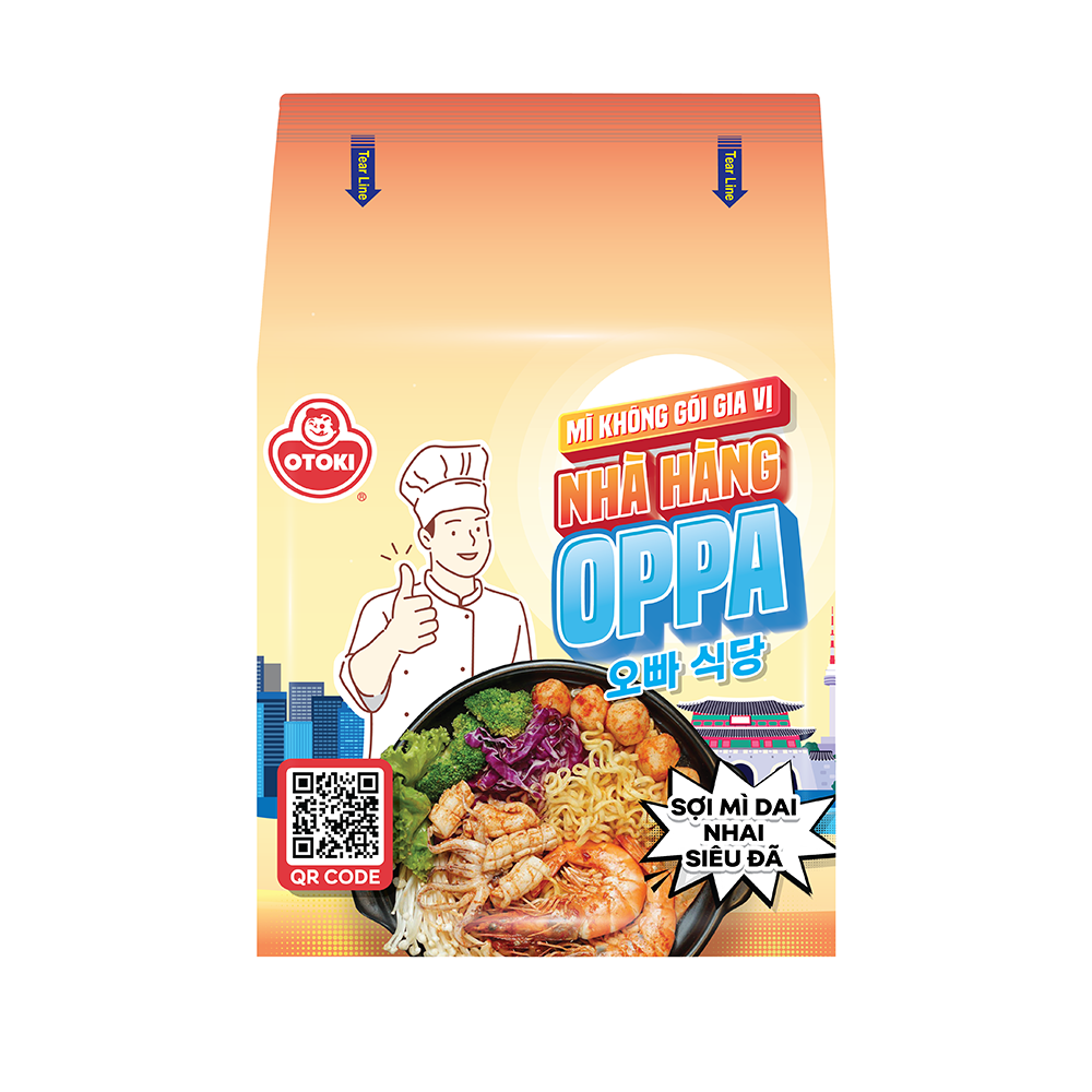 Mì không gói gia vị OPPA Ottogi được làm từ bột mì chất lượng cao, sợi mì vàng óng, dai mềm và có độ đàn hồi tuyệt vời sau khi nấu chín. Đây là loại mì lý tưởng để kết hợp với các nguyên liệu và gia vị theo ý thích của người dùng, giúp tạo ra những món ăn độc đáo và đậm chất cá nhân. Bạn có thể sử dụng mì này để chế biến nhiều món ăn như mì xào, mì nước, lẩu mì, hoặc các món ăn sáng tạo khác mà không bị giới hạn bởi gói gia vị cố định.