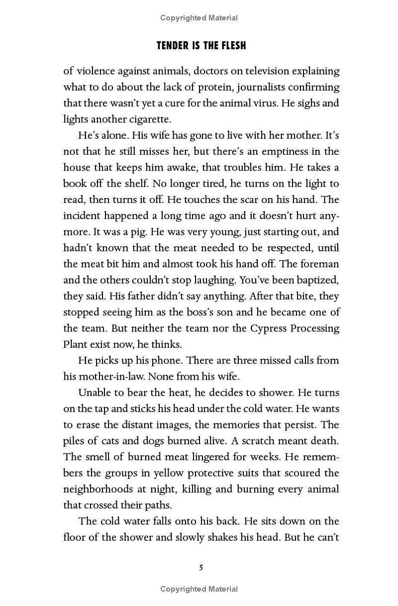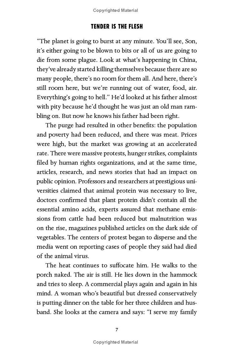 Tender Is The Flesh Working at the local processing plant, Marcos is in the business of slaughtering humans—though no one calls them that anymore. His wife has left him, his father is sinking into dementia,