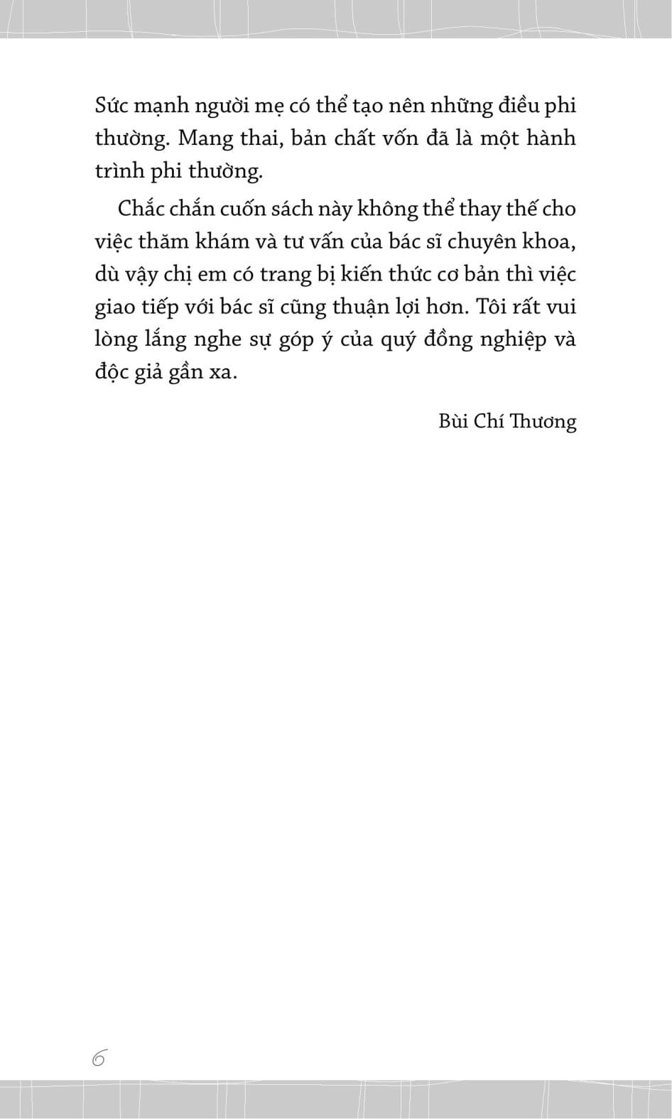 Ở Việt Nam, sách về sức khỏe phụ nữ của tuy nhiều nhưng thường là sách dịch, có khoảng cách với chị em người Việt, lại chủ yếu tập trung vào mảng nuôi dạy, chăm con. Vì vậy một cuốn sách của bác sĩ Việt với bề dày kinh nghiệm lẫn tri thức chuyên môn vững vàng, là cẩm nang quý giá cho các bà mẹ đang mong có con nhưng còn điều băn khoăn, hoặc đang mang thai và mong có thai kỳ khỏe mạnh.