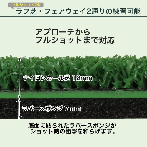Thảm Approach 2WAY GV0260 mô phỏng Fairway và Rough. Kích thước đóng gói 420 × 210 (mm) Kích thước Kích thước thảm: 410 × 200mm Trọng lượng: Xấp xỉ 900g