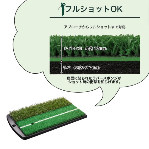 Thảm đánh Full shot 2WAY GV0264 trải nghiệm đầy đủ các mô phỏng sân golf thực tế. Kích thước đóng gói 435 × 265 (mm) Kích thước Kích thước thảm : 430 × 253mm Trọng lượng : Khoảng 1350g