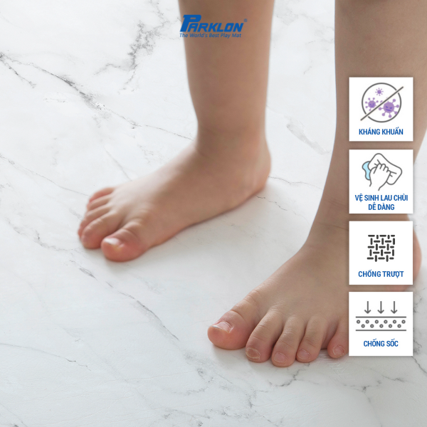 Thảm Trẻ Em Hàng Đầu Thế Giới Nhập Khẩu Chính Hãng Hàn Quốc Parklon Thương hiệu: Parklon Xuất xứ: Hàn Quốc Chất liệu: Nhựa PVC Họa tiết: Hoa Văn Vân Đá Hoa Cương Trắng