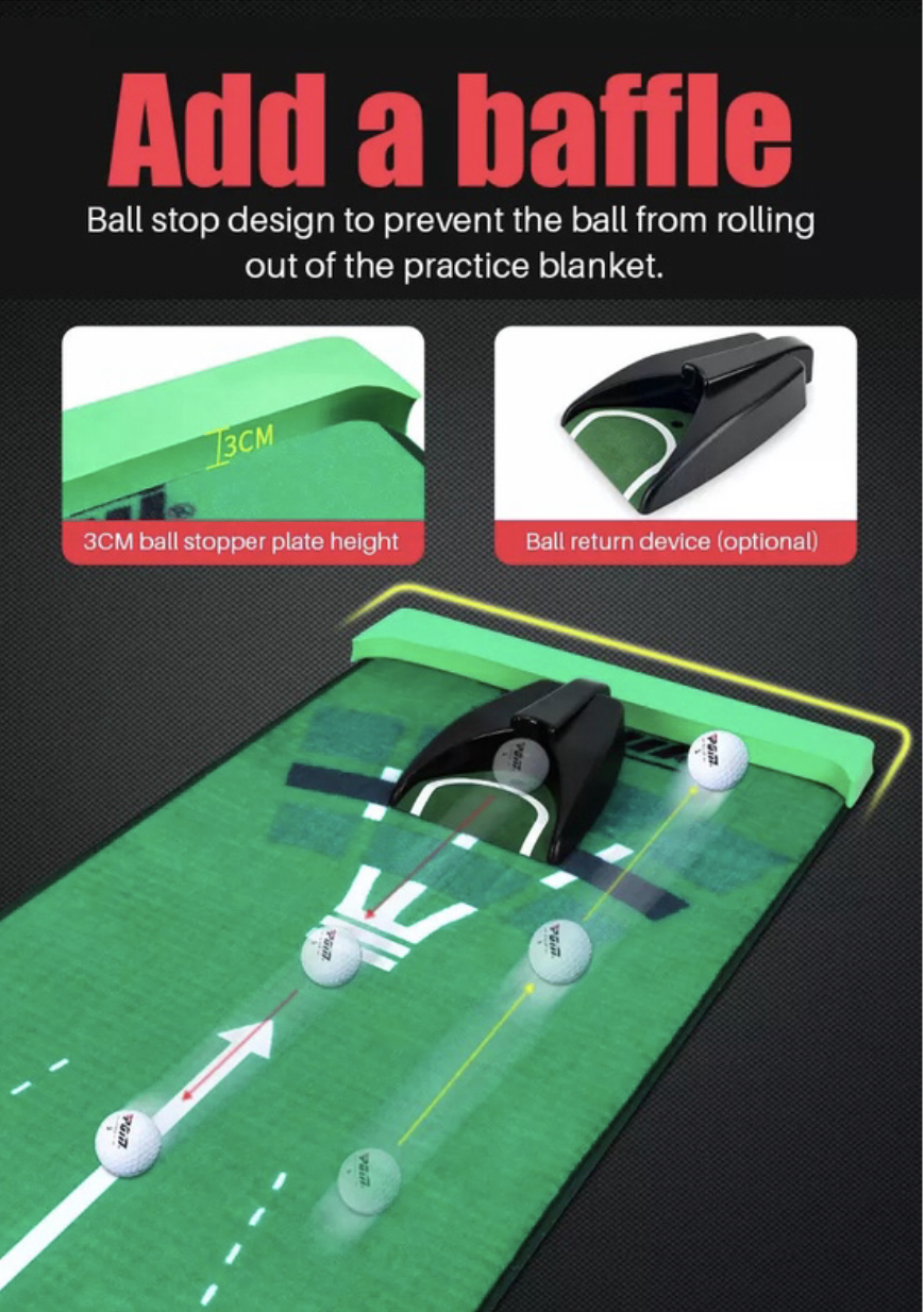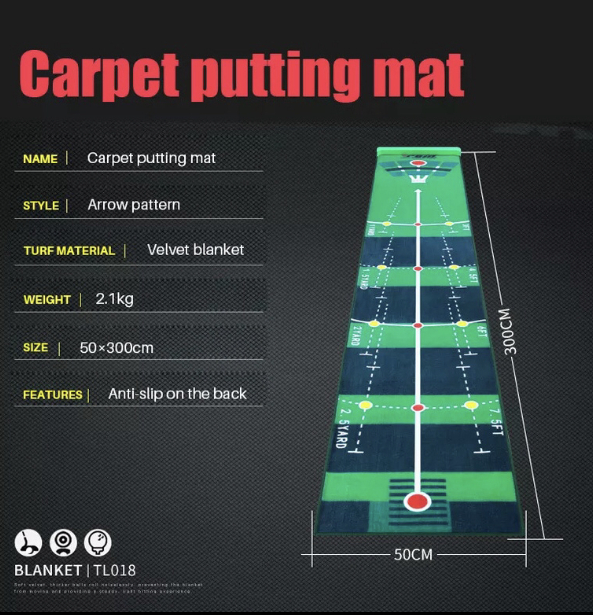 Thảm tập Putting Mat. Loại thảm Putting này là một sản phẩm có chất lượng cao, có thể đặt bóng ở nhiều vị trí khác nhau, đi kèm đó trên bề mặt thảm có vẽ