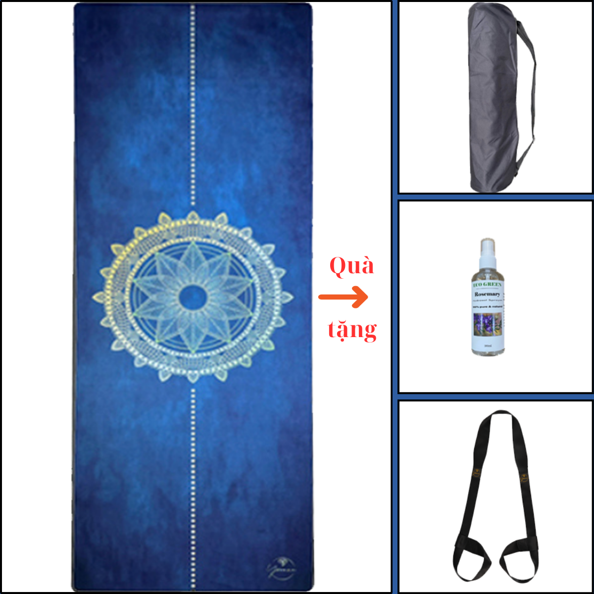 - Cất giữ và vận chuyển: Thảm có kèm theo túi đựng chuyên dụng và dây buộc thảm, dễ dàng mang theo tập ở các địa điểm khác nhau.