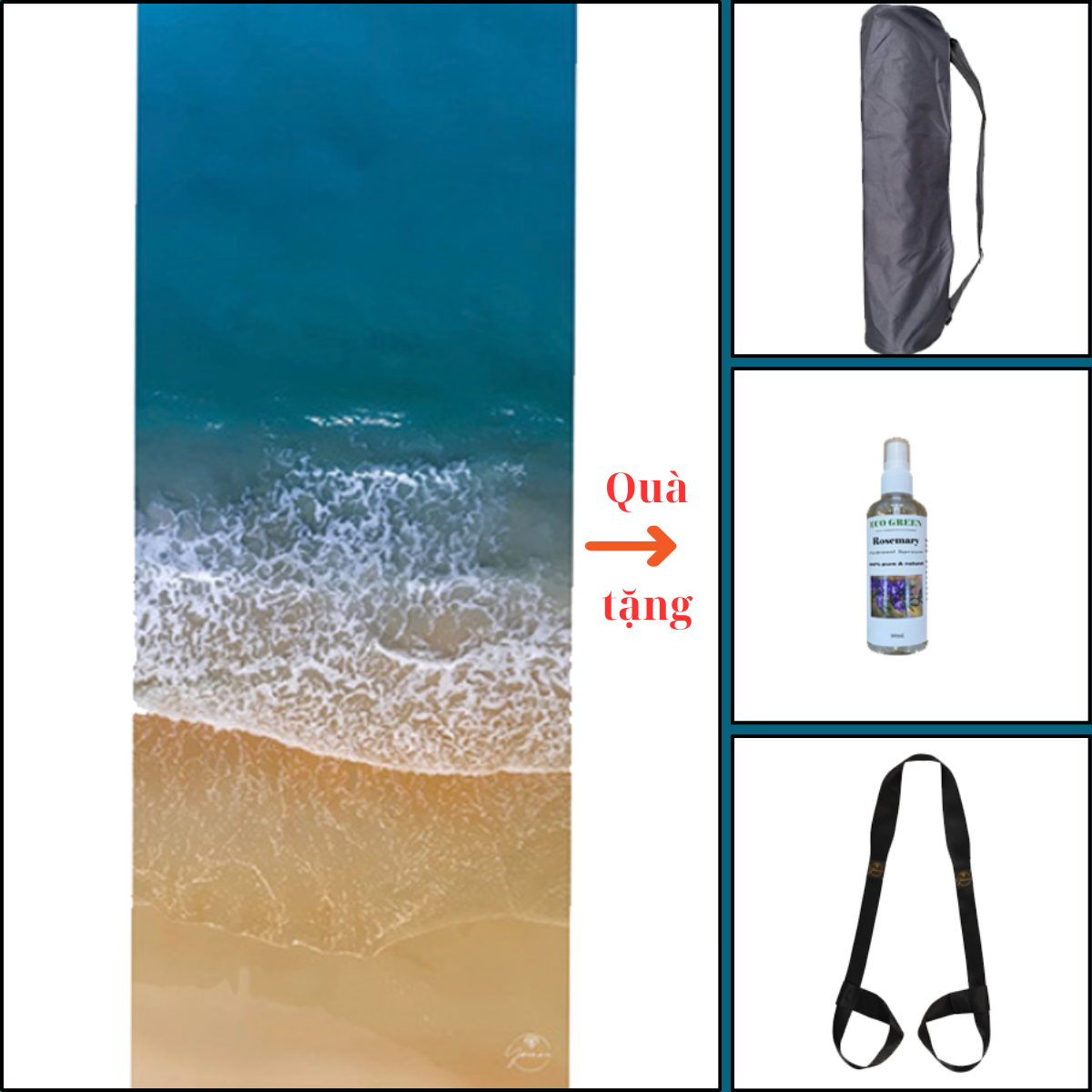 - Cất giữ và vận chuyển: Thảm có kèm theo túi đựng chuyên dụng và dây buộc thảm, dễ dàng mang theo tập ở các địa điểm khác nhau.