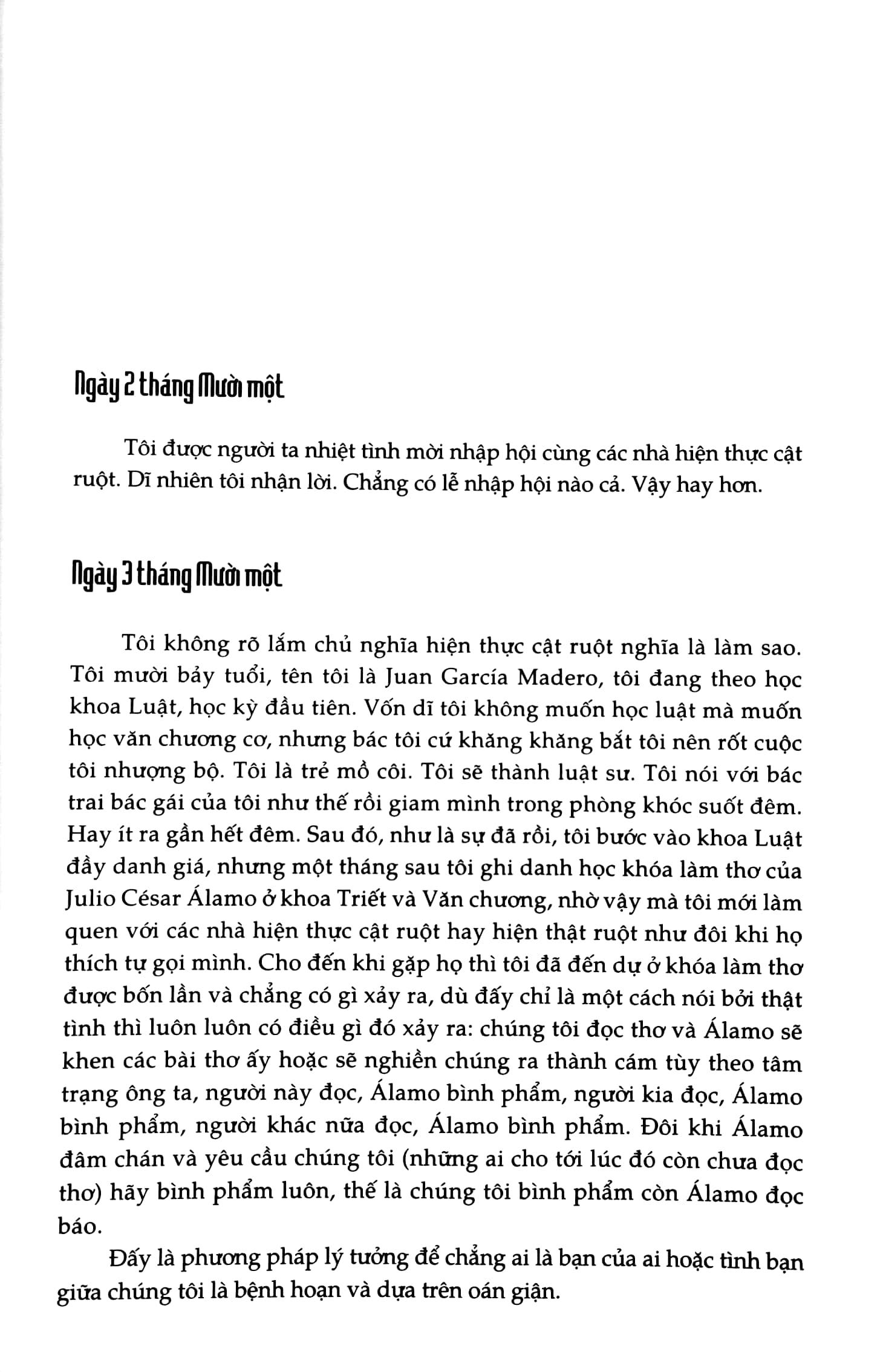 Đây là chuyện về các thám tử. Những thám tử kiêm nhà thơ, truy tìm dấu vết một người mất tích – một nhà thơ khác. Một cuộc truy tìm trải suốt nhiều năm, diễn ra khắp ba châu lục nhưng trước hết là Mỹ la tinh, miền đất mênh mông của vô vàn phức tạp, nhộn nhạo, bạo tàn và đẹp, với hầu như mọi thứ trên đời: đế quốc, cách mạng, độc tài, loạn lạc, rượu, túy, cảnh sát, mại dâm, tội phạm, nhà thơ. Nhà thơ, một nòi lạ, ngu ngơ, rồ dại, đẹp, nảy nòi một cách khó hiểu và hữu cơ trên bối cảnh tạp nham đầy bất trắc này, và, xuyên suốt câu chuyện dài, ngồn ngộn chi tiết và cảm xúc, tán xạ qua hàng chục giọng khác nhau, hai nhà thơ đơn độc đi tìm nhà thơ đơn độc thứ ba, như hành trình tìm lại một thành viên của cái bộ tộc hiếm gồm những kẻ yêu cái đẹp và đau đời đó, hầu khôi phục một mảnh nhỏ của bộ tộc ấy.