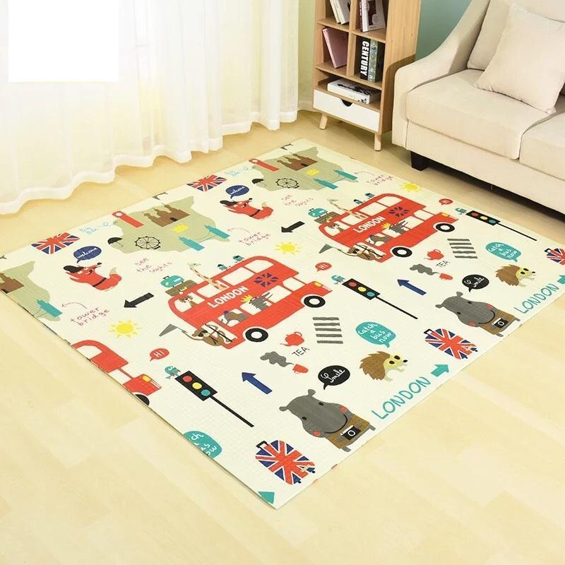 Không cong vênh như các mẫu thảm khác Không thấm nước,dễ lau chùi vệ sinh Không mùi (cả trước và sau khi sử dụng),không có mùi nhựa,mùi xốp như các chất liệu rẻ tiền khác Mềm mại và thoải mái Bề mặt thảm xốp có vân nổi chống trơn trượt. Mua 1 được 2 do sử dụng được cả 2 mặt Có thể gập gọn trong túi đựng kèm theo mang đi khắp mọi nơi Gía cả vô cùng hợp lý cho thảm chất liệu cao cấp an toàn cho bé yêu đi kèm kích thước lớn 1m8 x2m