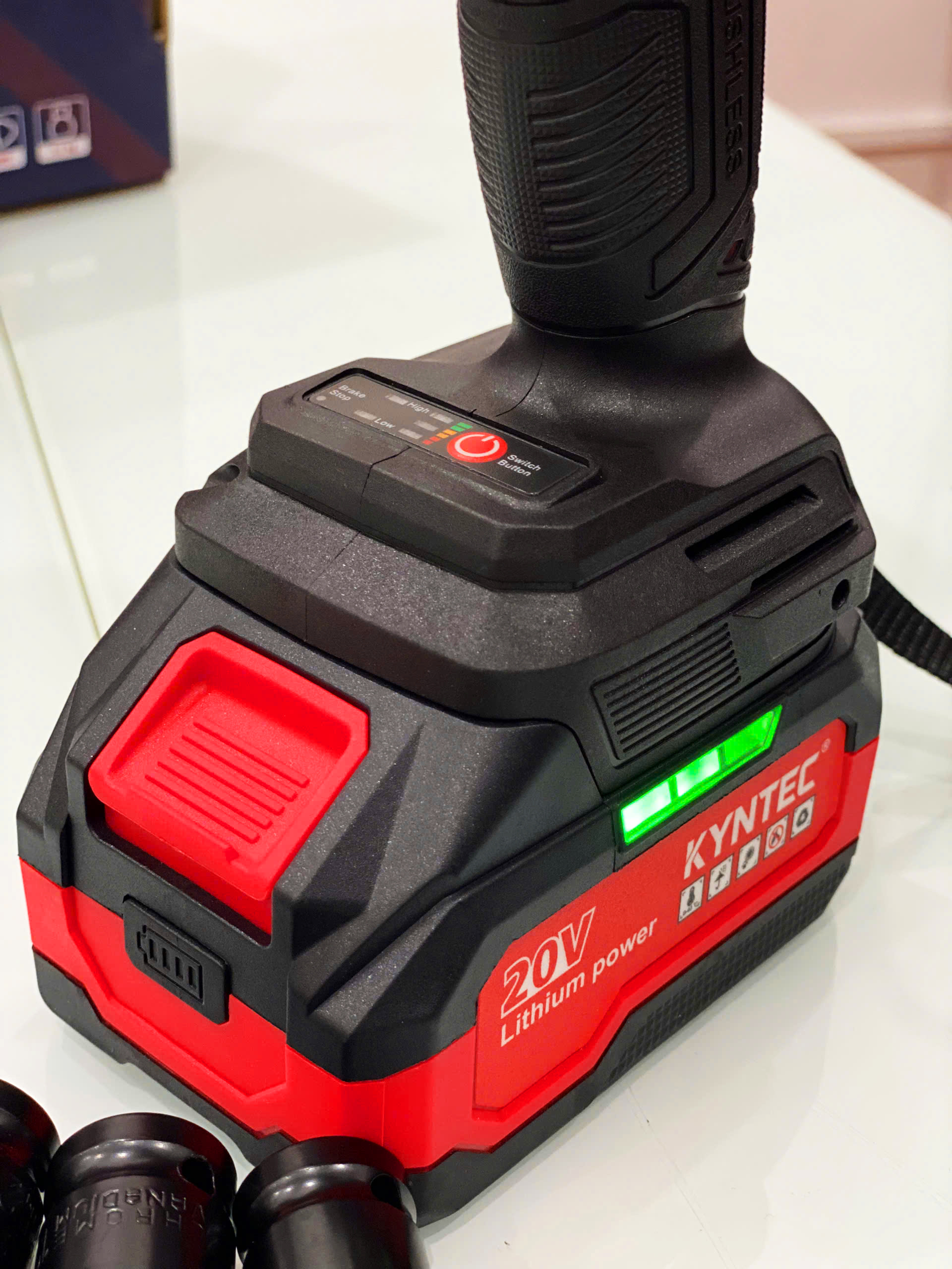 Mua tại TiktokThân máy siết bulong pin chính hãng Kynko Kyntec V20- KT78 -390 20V chân pin phổ thông (giá không gồm pin) THÔNG SỐ KỸ THUẬT Động cơ không chổi than Tốc độ : 0 - 2.700 rpm. Điện thế pin : 20V - 4.0Ah (chân pin phổ thông). Lực xiết : 390 N.m. Đường kính mũi: 1/2 inch. Trọng lượng: 1.1kg. (giá không gồm pin) hoặc Combo KT78 (2 pin 4.0Ah tiêu chuẩn)