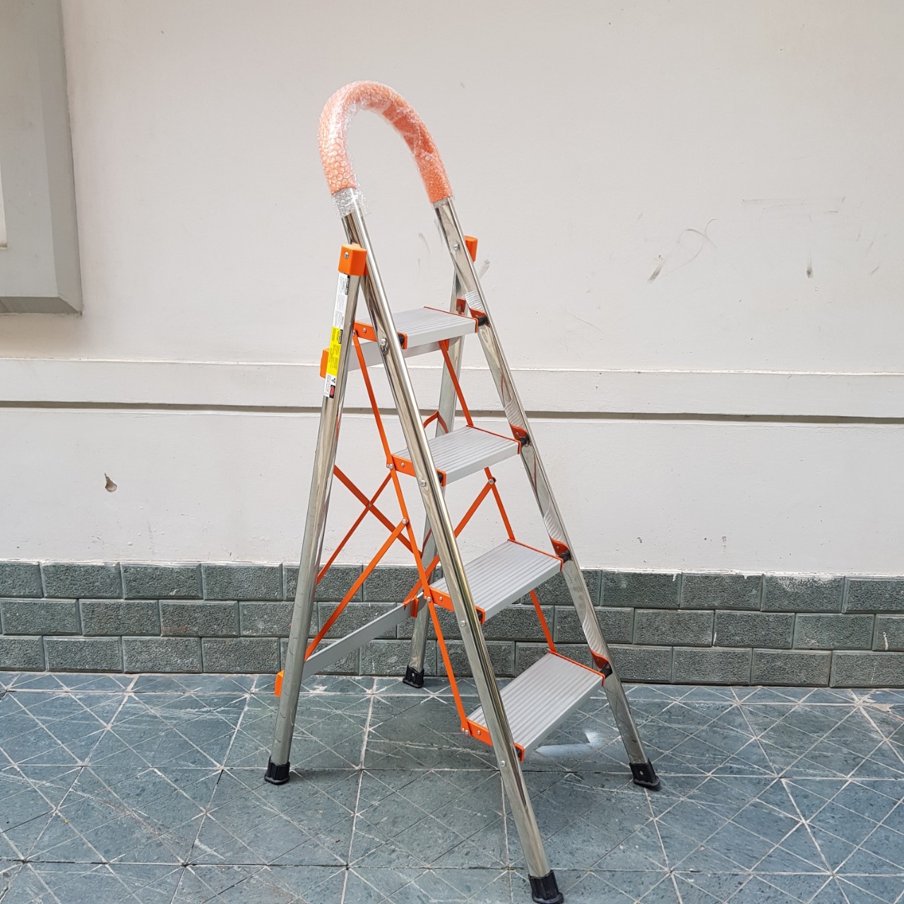 Điểm nổi bật của Thang ghế inox DIY - Rất tiện lợi cho việc thắp hương hoặc lấy đồ trên kho, khoan thay bóng đèn. - Duỗi chân hết cỡ để thang ổn định và