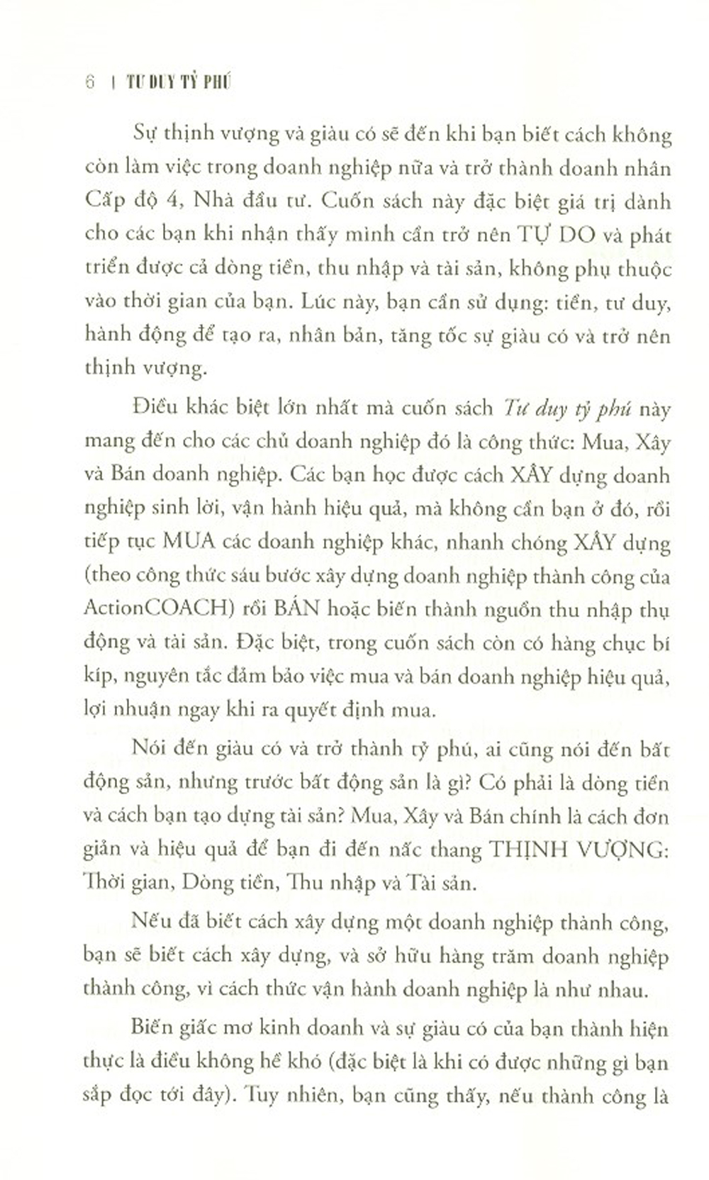 Mua tại TiktokThành Công Tức Thì : TƯ DUY TỶ PHÚ Sự thịnh vượng và giàu có sẽ đến khi bạn biết cách không còn làm việc trong doanh nghiệp nữa và trở thành doanh nhân cấp độ 4, nhà đầu tư. Cuốn sách này đặc biệt giúp bạn phát triển dòng tiền, thu nhập và tài sản không phụ thuộc vào thời gian của bạn, tăng tốc sự giàu có và trở nên thịnh vượng: Tư duy THỊNH VƯỢNG Dòng tiền dương 5 cấp độ của Doanh nhân, làm thế nào để lên nấc thang 4 và 5? Công thức Mua, Xây, Bán doanh nghiệp Làm thế nào để tăng vốn cho doanh nghiệp