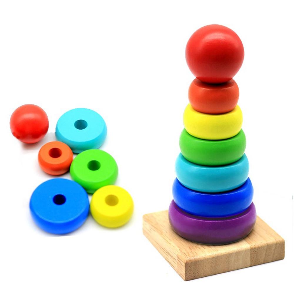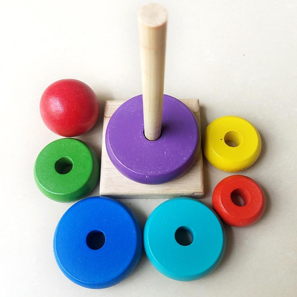 ✨Tháp cầu vòng xếp chồng 7 tầng bằng gỗ loại nhỏ - Đồ chơi giáo dục sớm cho bé 1 tuổi - Giáo Cụ Montessori