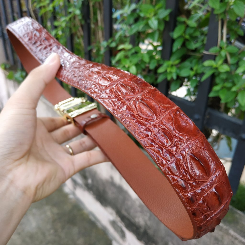 Thắt lưng da cá sấu thật phần bụng liền nguyên tấm và đầu khóa kéo tự động dễ sử dụng Yimita
