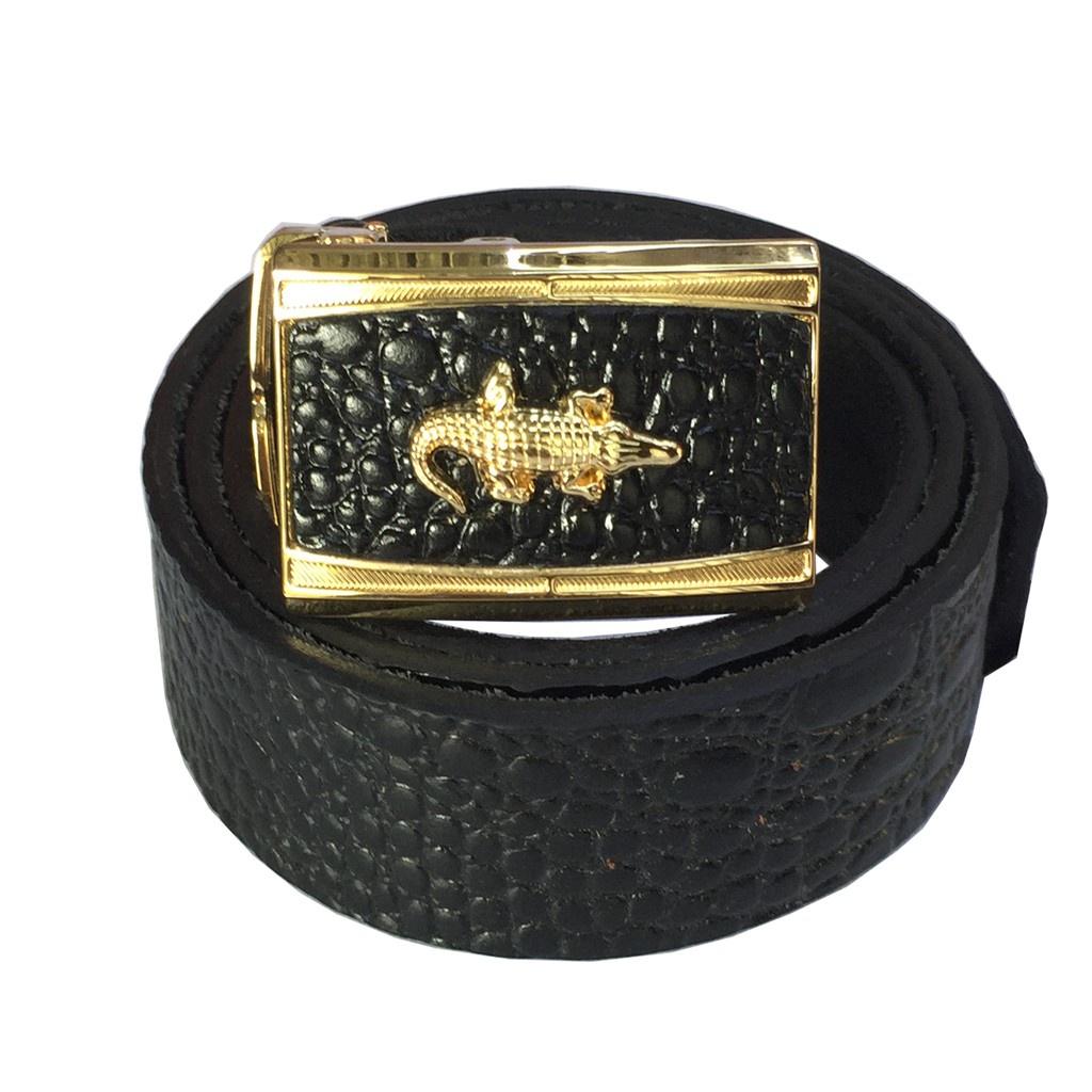 Thắt lưng nam da thật mặt khóa tự động bằng thép sáng bóng không gỉ