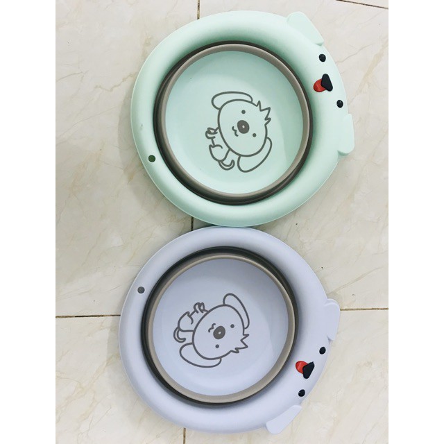 – Thau rửa mặt cho bé gấp gọn hình chú chó có vành chậu dày giúp mẹ cầm nắm chậu dễ dàng hơn