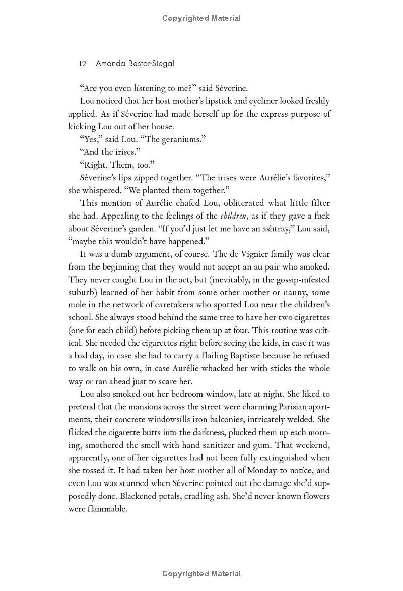 Paris, 2015. A crowd gathers outside the Chauvet home in the affluent suburban community of Maisons-Larue, watching as the family’s American au pair is led away in handcuffs after the sudden death of her young charge. The grieving mother believes the caretaker is to blame, and the neighborhood is thrown into chaos, unsure who is at fault—the enigmatic, young foreigner or the mother herself, who has never seemed an active participant in the lives of her children.
