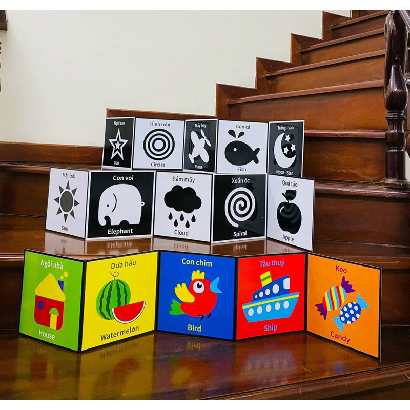 ✨Thẻ Kích Thích Thị Giác Cho Trẻ Sơ Sinh, Trọn Bộ 3 Cuốn Kích Thích Thị Giác Song Ngữ Anh - Việt