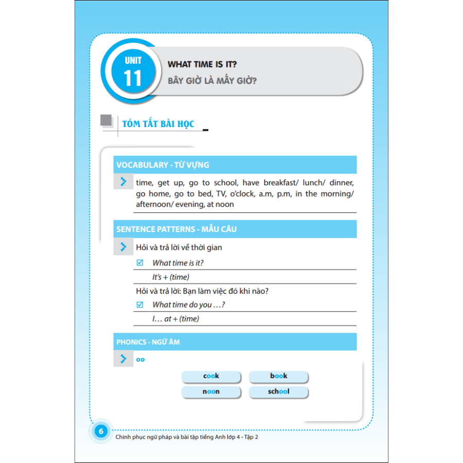 Mua tại TiktokBộ sách “Chinh phục ngữ pháp và bài tập tiếng Anh” các lớp 3, 4, 5 được biên soạn theo khung giáo trình tiếng Anh đang được giảng dạy trong các trường Tiểu học, Trung học cơ sở và Trung học phổ thông trên toàn quốc. Mỗi bài học trong cuốn sách được biên soạn theo hai phần kiến thức cơ bản: