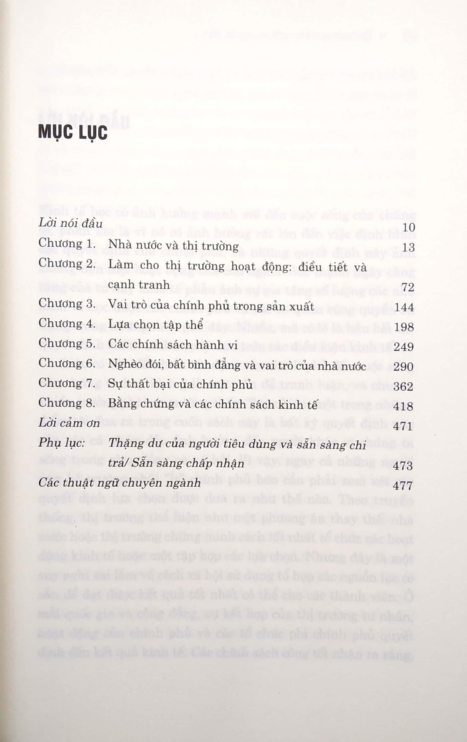 Nội dung cuốn sách đề cập đến các vấn đề: nhà nước và thị trường, xem xét vai trò tương đối của chính phủ, khu vực tư nhân và thị trường trong nền kinh tế;