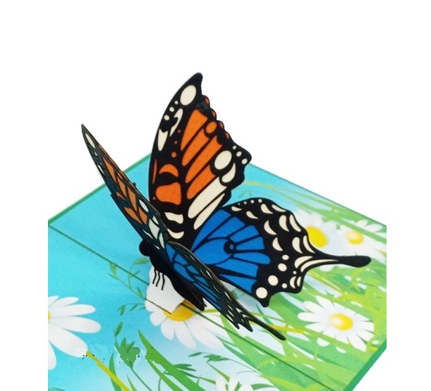 Mang đến sự bất ngờ và rực rỡ sắc màu với thiệp 3D Pop Up hoa và bướm. Khi mở thiệp, cả khu vườn hoa bung nở lung linh cùng những chú bướm bay lượn