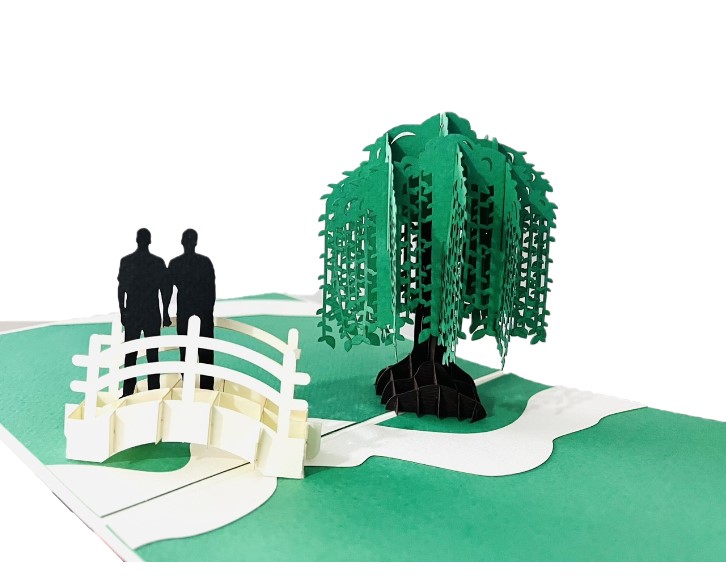 Thể hiện sự tự do và tình yêu chân thành với thiệp 3D Pop Up cặp đôi LGBT. Khi mở ra, hình ảnh hai người nắm tay nhau cùng đi trên cây cầu nhỏ