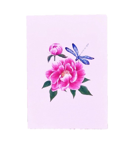 Thổi hồn thiên nhiên vào món quà tặng với thiệp 3D Pop Up chuồn chuồn & hoa mẫu đơn. Khi mở ra, hình ảnh chuồn chuồn xanh bật nổi với đôi cánh trong suốt bay