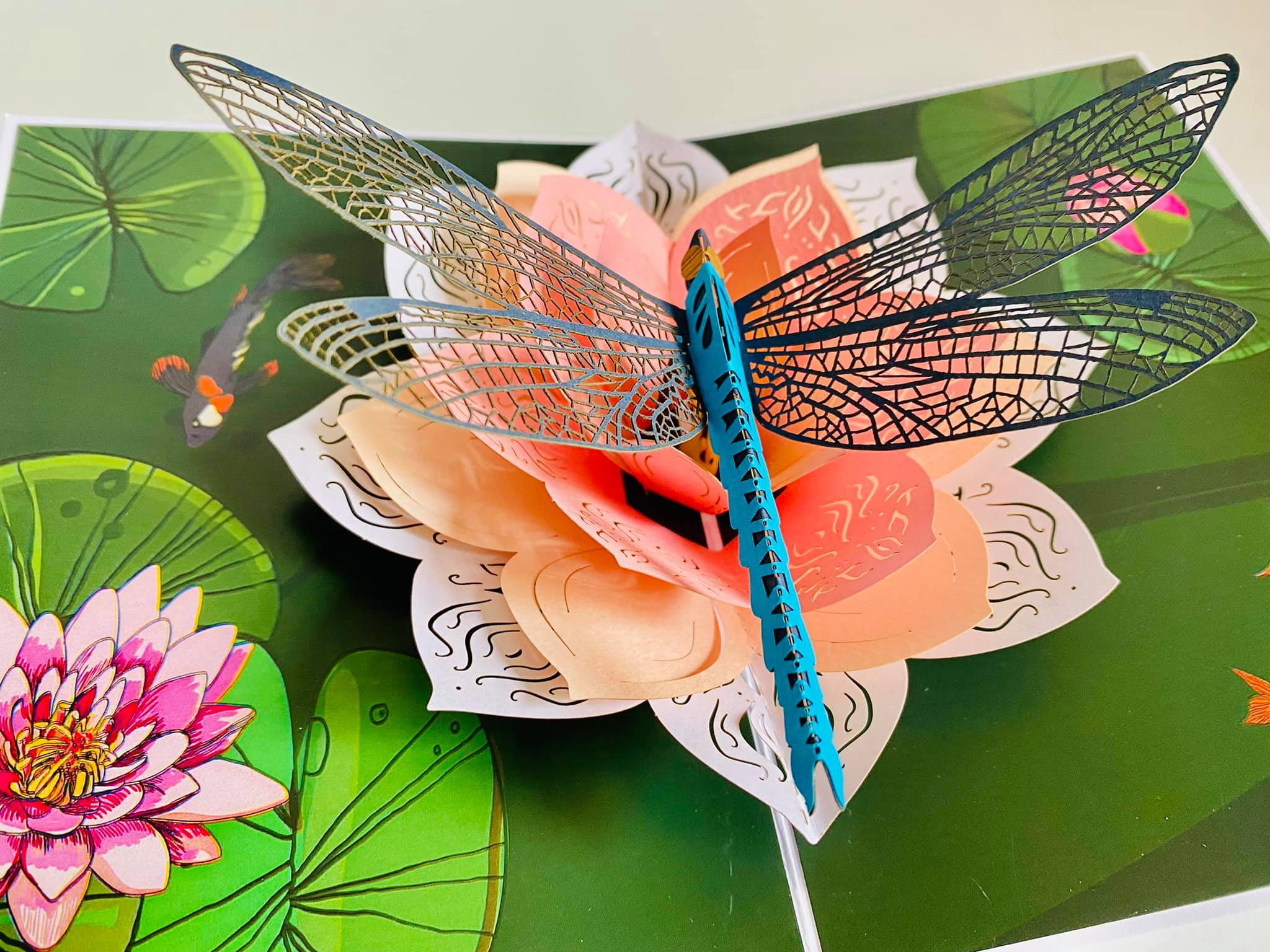 ✨Thiệp 3D Pop Up Chuồn Chuồn & Hoa Sen – Thiệp Nghệ Thuật, Thiệp Chúc Mừng, Sinh Nhật, Độc Đáo, F21