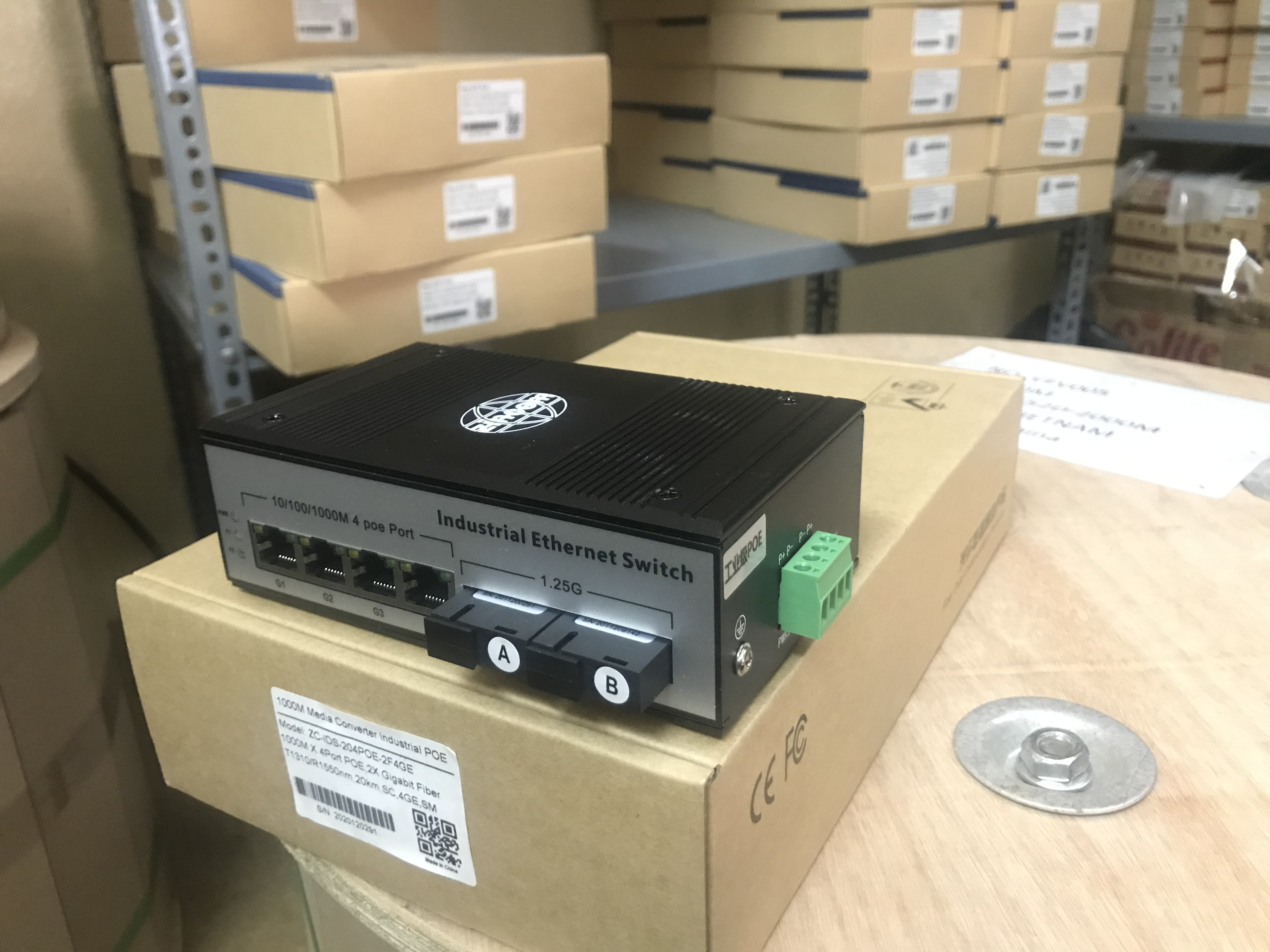 - 2 cổng quang 1 sợi chuẩn SC AB, tốc độ 1.25Gbps, 20Km