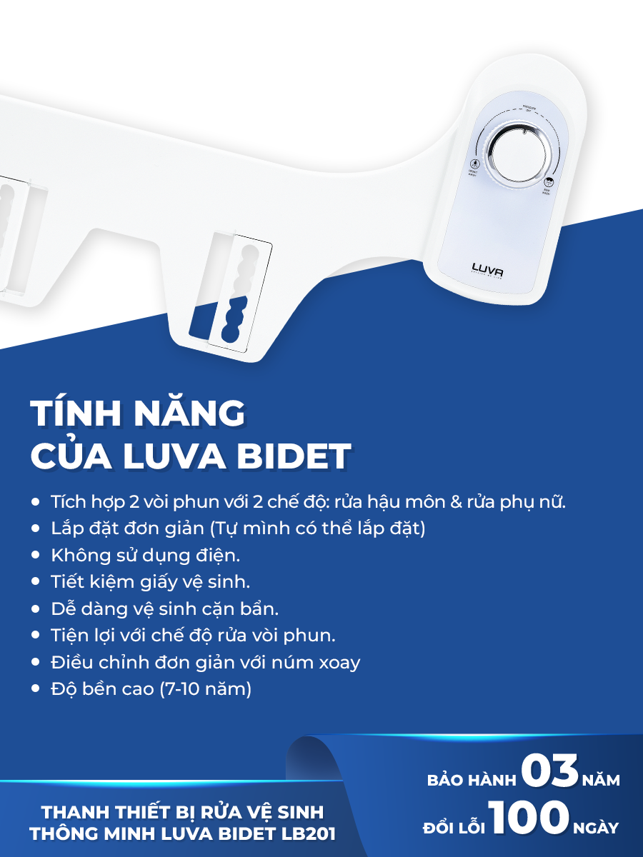 Mua tại TiktokThiết bị vệ sinh thông minh LUVA BIDET LB201, không dùng điện, tự rửa vòi phun, bảo hành 3 năm, đổi lỗi 100 ngày. Thông tin sản phẩm: Thiết Bị Vệ Sinh Thông Minh LUVA BIDET LB201 - 2 Vòi Phun