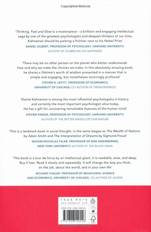 Thinking, Fast and Slow The phenomenal New York Times Bestseller by Nobel Prize-winner Daniel Kahneman, Thinking Fast and Slow offers a whole new look at the way our minds work, and how we make decisions. Why is