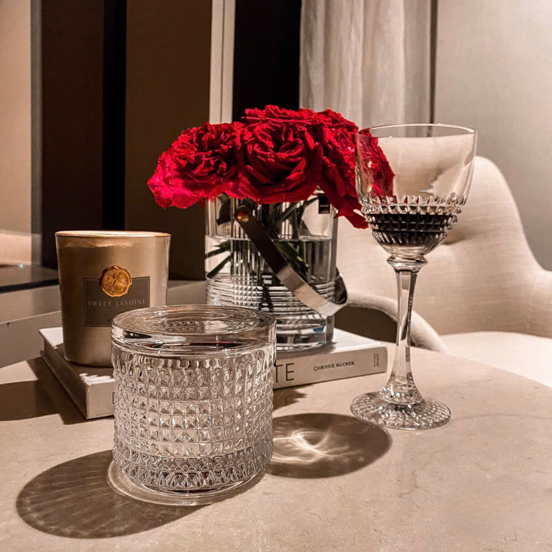 Thố dùng trên bàn tiếp khách ngày Tết như đựng mứt kẹo, hoa quả sấy, ô Kích thước 19cm "lấp lánh long lanh" khúc xạ ánh sáng tuyệt đẹp. Những mảnh pha lê được cắt