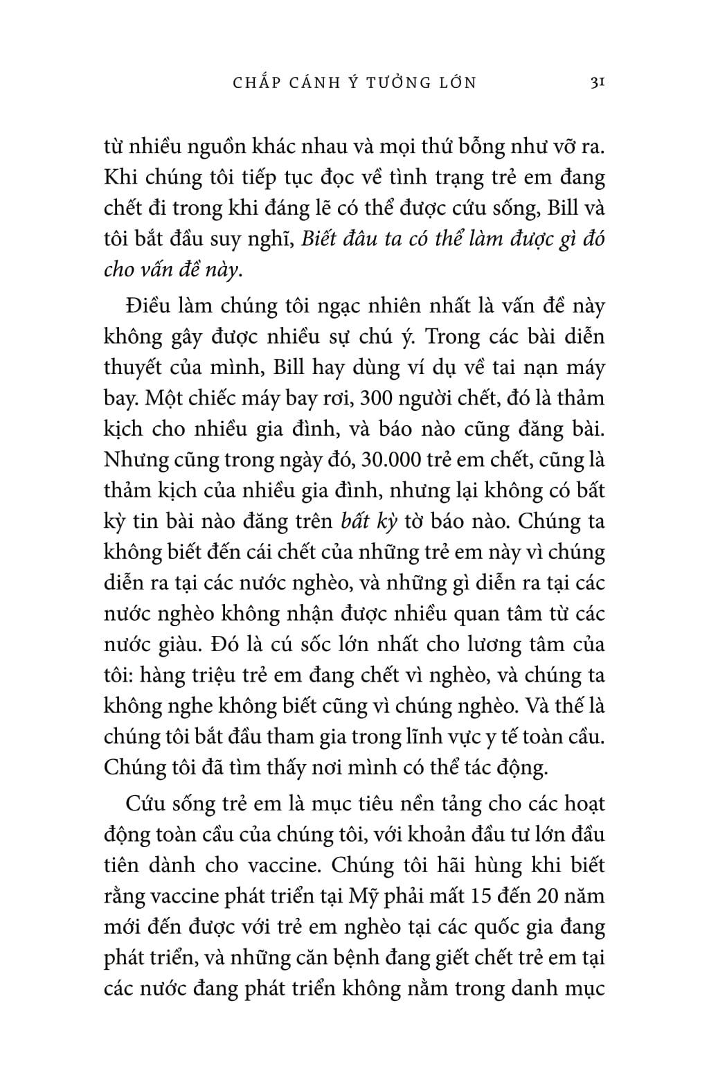 Câu chuyện khó quên của Melinda được hỗ trợ bởi những dữ liệu đáng kinh ngạc khi bà trình bày những vấn đề mà chúng ta cần phải quan tâm - từ tảo hôn, đến sự thiếu tiếp cận với các biện pháp tránh thai cho đến bất bình đẳng giới tại nơi làm việc. Và, lần đầu tiên bà viết về cuộc sống cá nhân và con đường dẫn đến bình đẳng trong hôn nhân của chính m.ình.