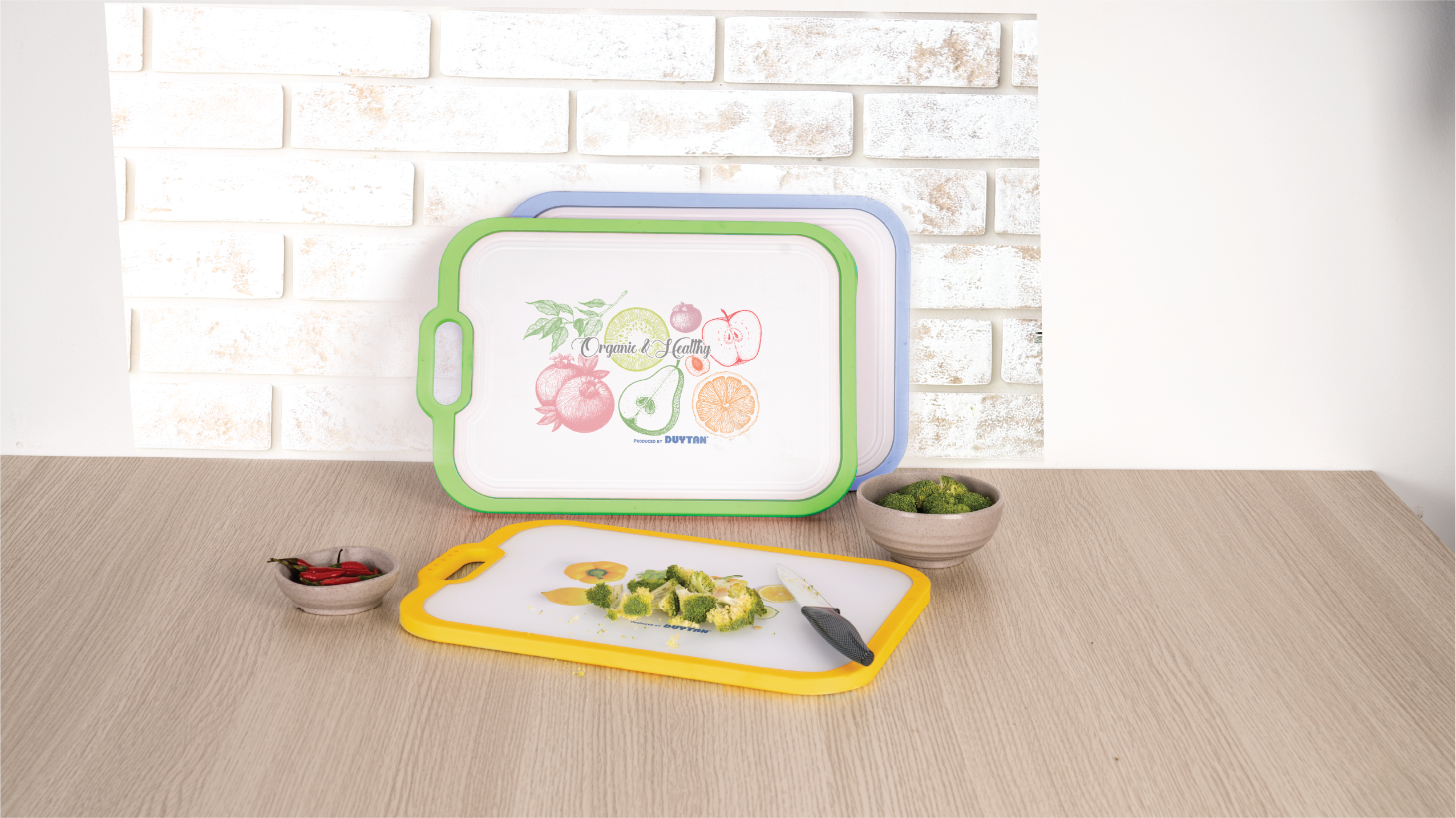 Nhựa Duy Tân đã cho ra mắt sản phẩm thớt tròn và thớt chữ nhật với nhiều công dụng tuyệt vời, lại đẹp mắt, thanh lịch, tạo nên nét tinh tươm cho căn bếp nhà
