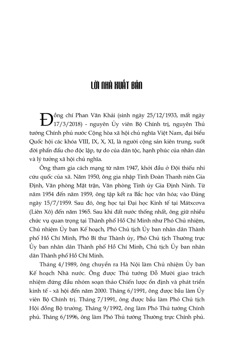 Nhân kỷ niệm 90 năm Ngày sinh Thủ tướng Phan Văn Khải, Trung tâm Lưu trữ quốc gia III, chúng tôi biên soạn cuốn sách Thủ tướng Phan Văn Khải và những quyết sách chiến lược (Tuyển chọn tài liệu lưu trữ) nhằm thể hiện những hoạt động nổi bật nhất của Thủ tướng Phan Văn Khải trong các lĩnh vực kinh tế, văn hóa – xã hội, giáo dục, ngoại giao qua các tài liệu, tư liệu được chọn lọc từ lưu trữ quốc gia.
