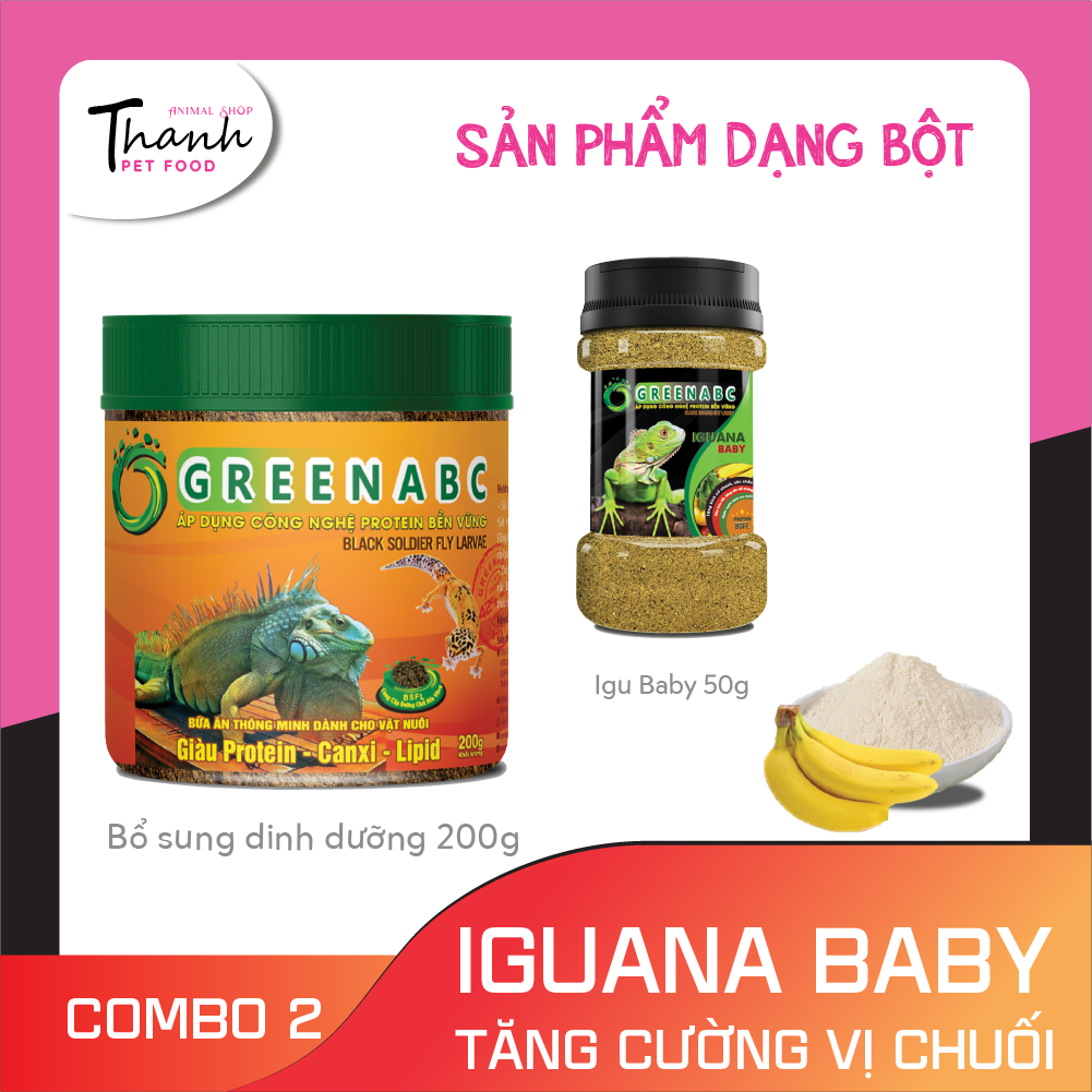 GREENABC - THỨC ĂN IGUANA BABY VỊ CHUỐI - Rồng Nam Mỹ Baby vị Chuối từ mới nở đến 9x. GREENABC là thức ăn cao cấp dành cho Iguana Baby - Rồng Nam Mỹ Baby