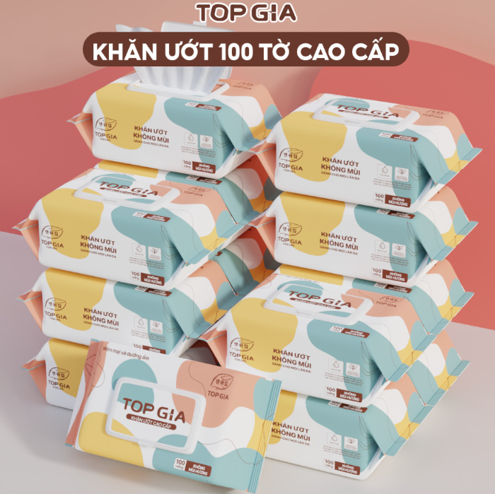 ✨Thùng 10 gói khăn ướt Topgia siêu hot 100 tờ an toàn cho mọi loại da
