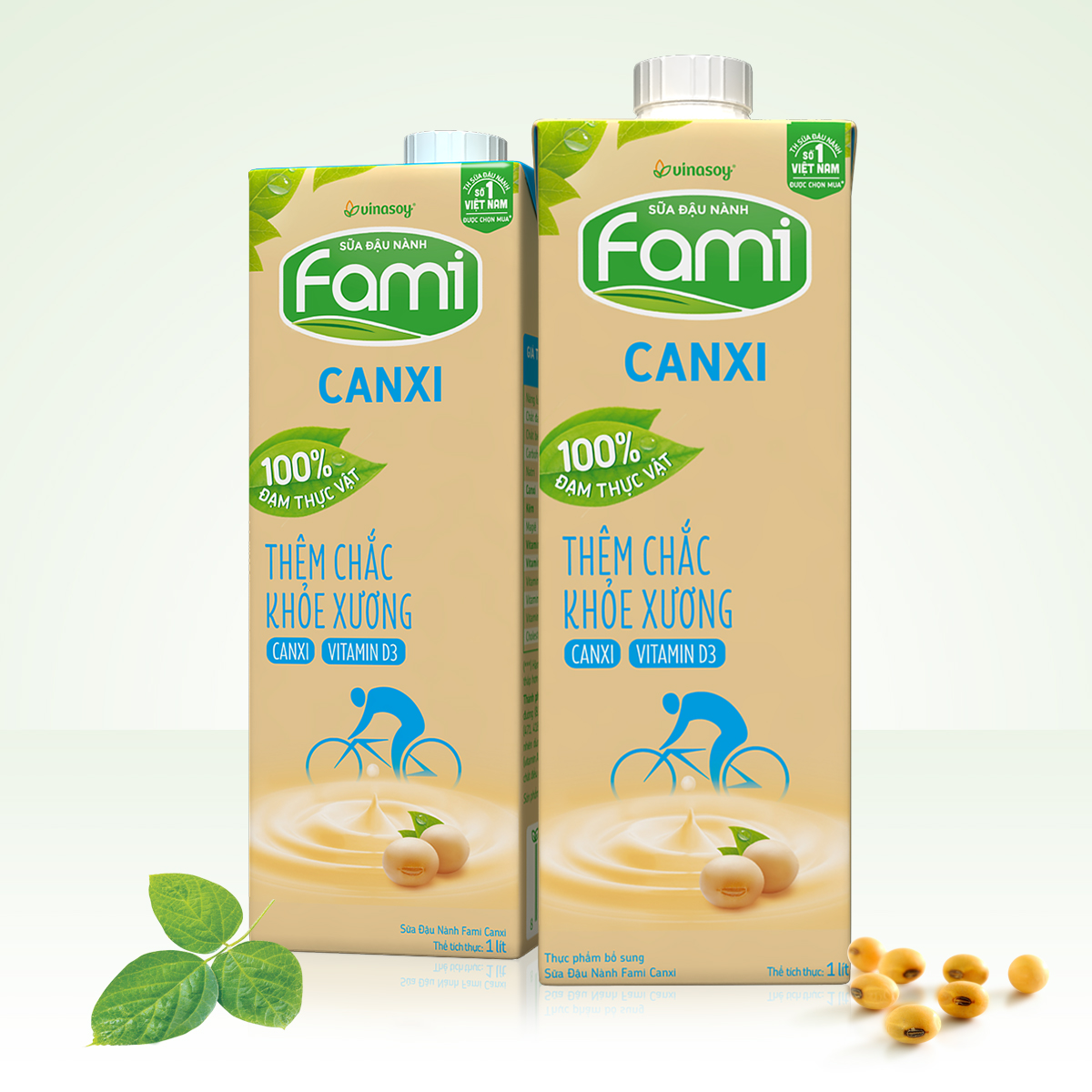 - Sữa đậu nành Fami Canxi Plus cùng công thức Bộ 3 Chắc Khỏe bổ sung Nano Canxi, Glucosamin và Protein thực vật hỗ trợ cho bạn có một hệ cơ - xương - khớp