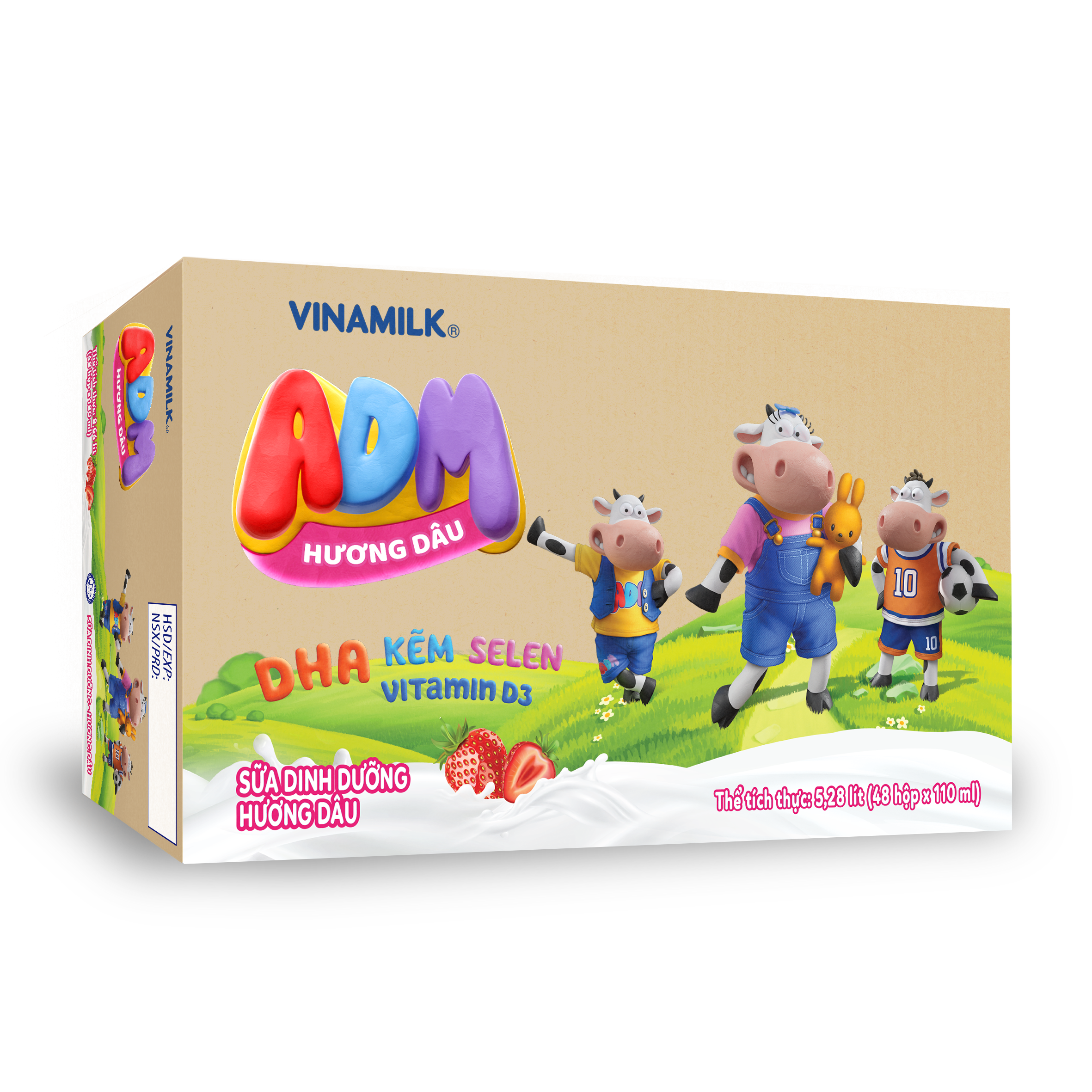 - Thùng 48 Hộp Sữa dinh dưỡng Vinamilk ADM Gold Hương dâu (110ml) bổ sung vi chất ADM GOLD MỚI Giàu Canxi và Vitamin A, nay bổ sung thêm Omega 3 và các Vitamin B theo