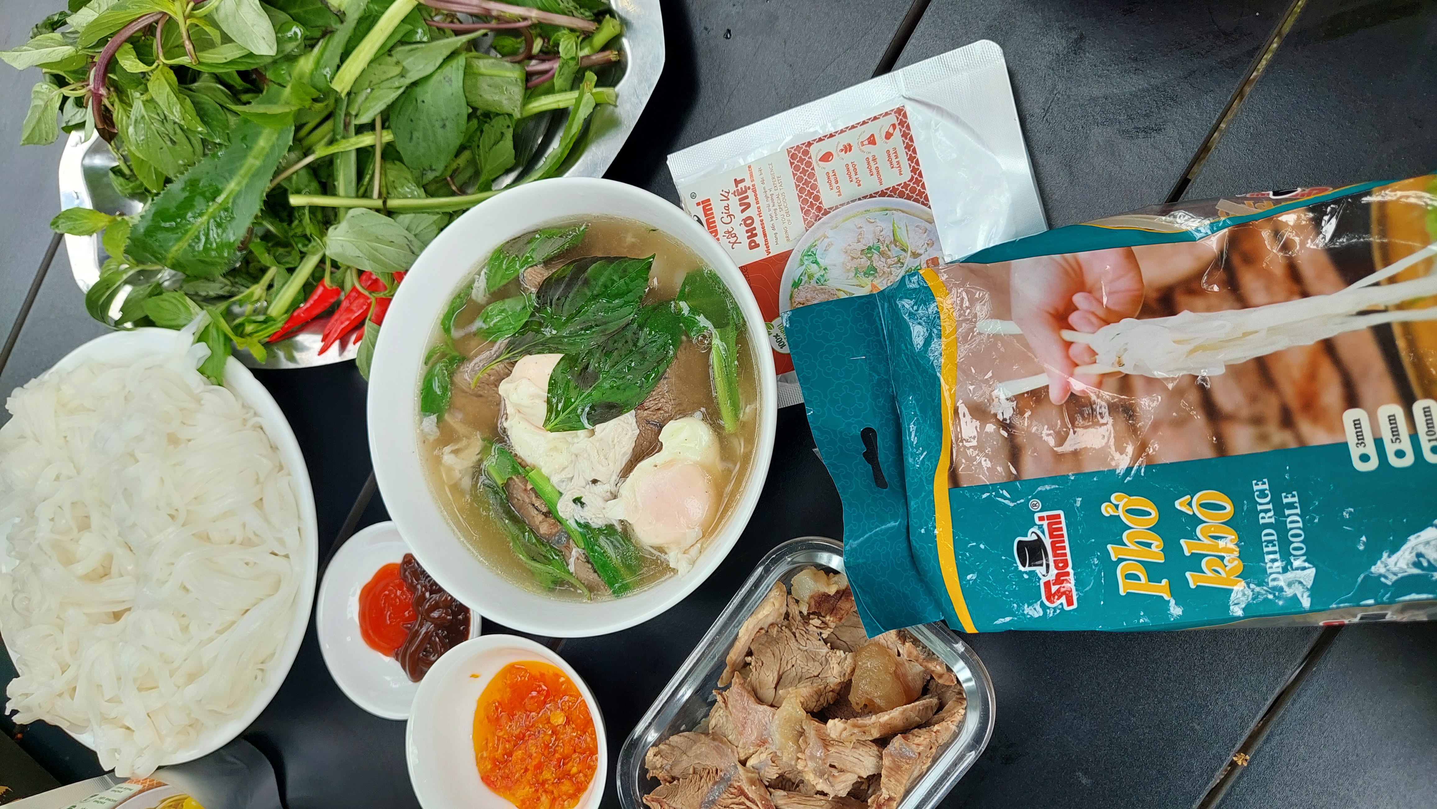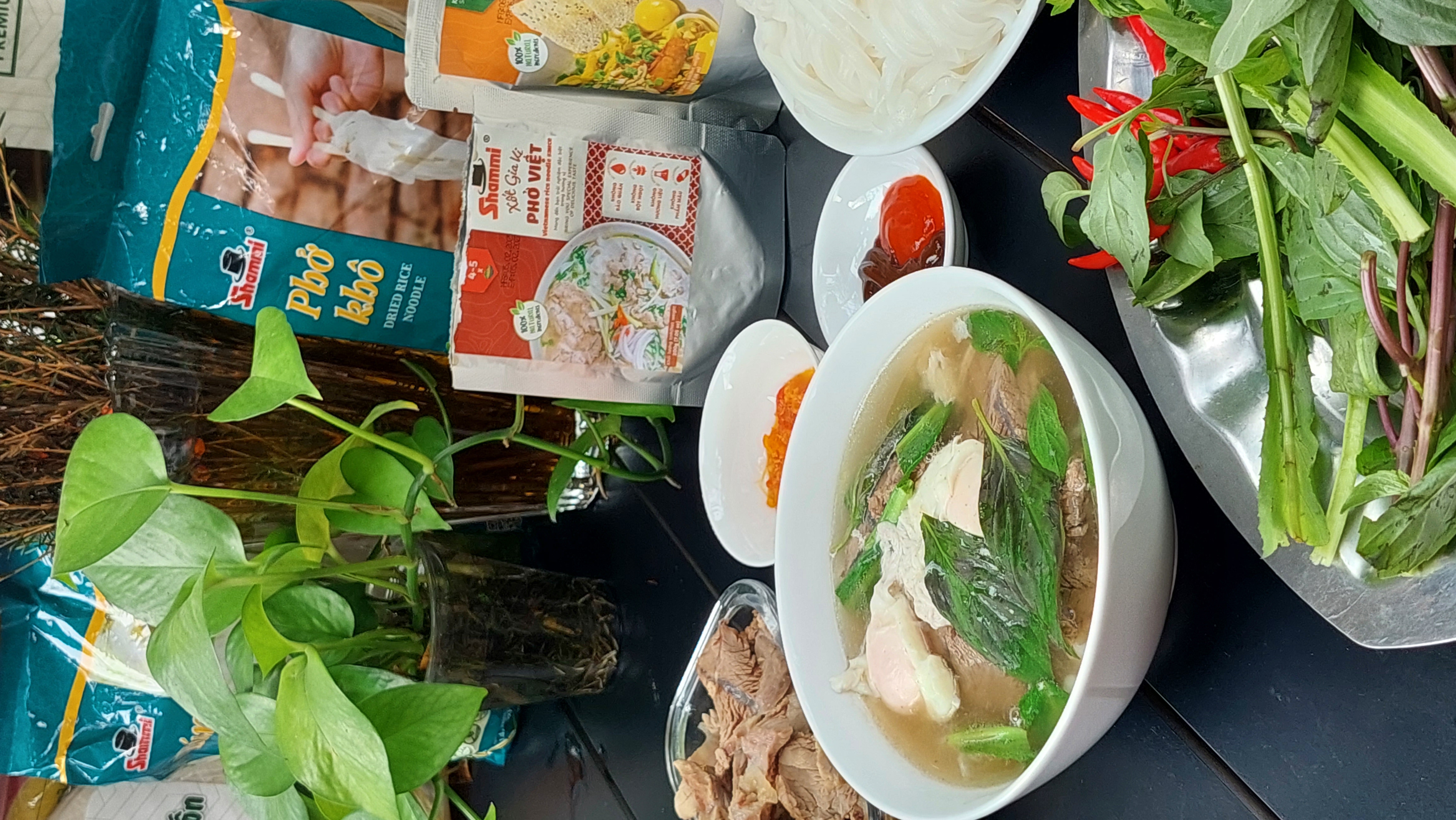 3/ Bây giờ, bạn có thể sử dụng phở với nước lèo tùy thích. Hoặc cũng có thể xào với hải sản, rau củ, thịt bò….