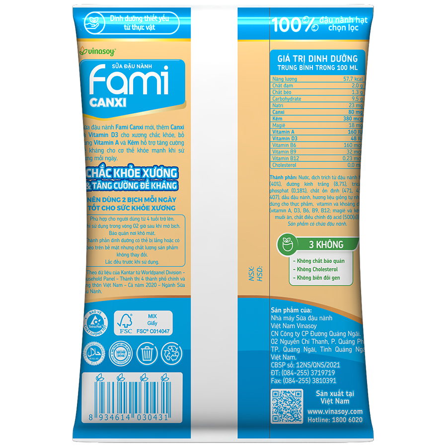 - Sữa đậu nành Fami Canxi Plus cùng công thức Bộ 3 Chắc Khỏe bổ sung Nano Canxi, Glucosamin và Protein thực vật hỗ trợ cho bạn có một hệ cơ - xương - khớp