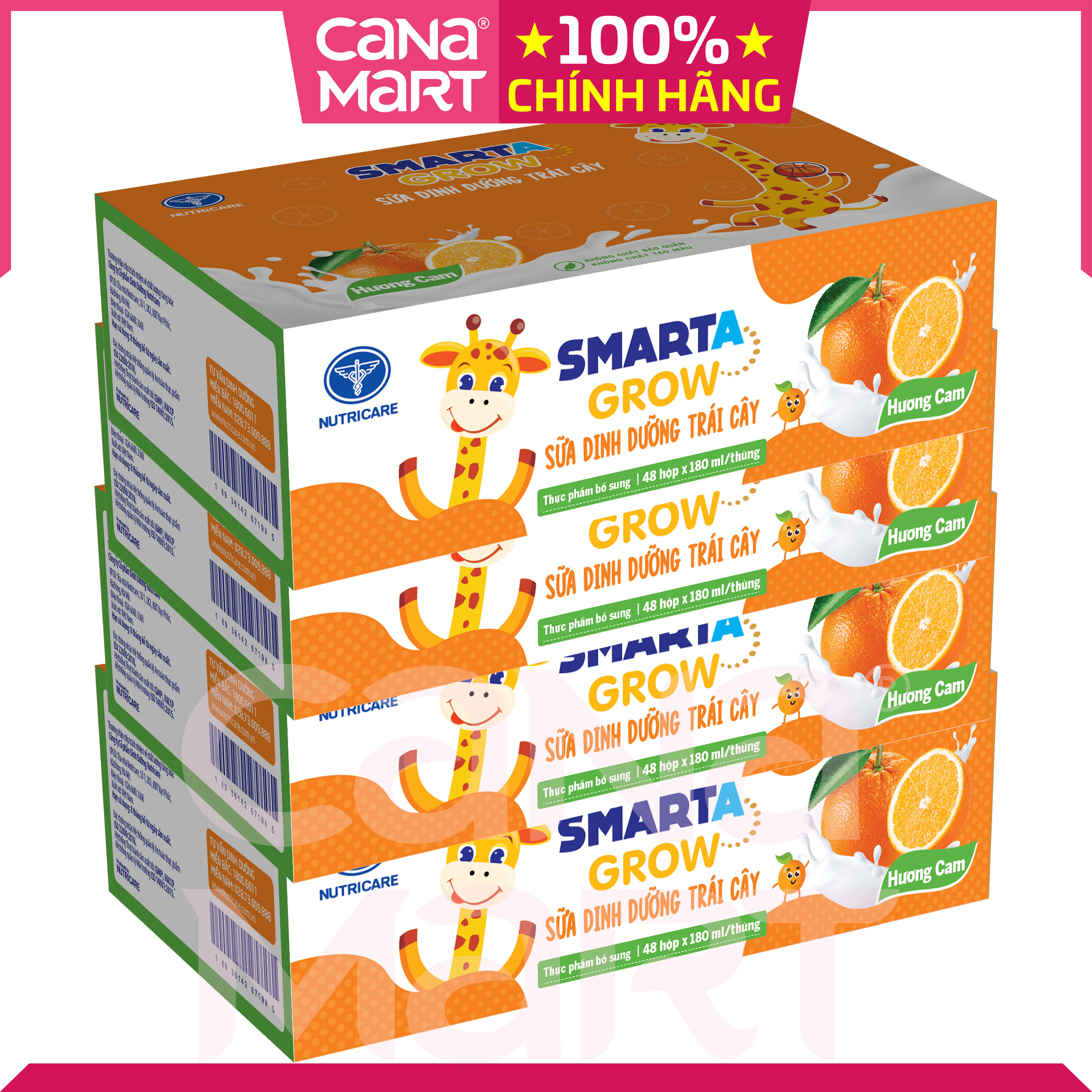 ✨Thùng sữa nước trái cây Smarta Grow (vị cam), giúp trẻ tăng chiều cao, phát triển não bộ, dinh dưỡng cho trẻ thấp còi (48 hộp x 180ml)