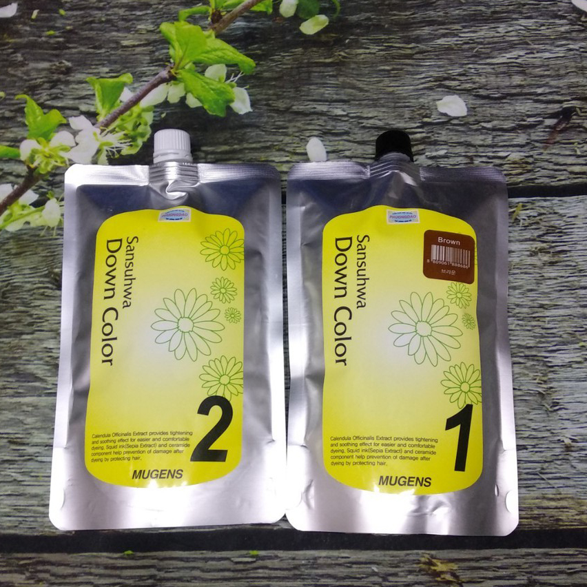 ✨Thuốc nhuộm tóc phủ bạc Mugens Sansuhwa Color Hàn Quốc Số 2 Nâu Đen: Dark Brown 2x450ml + Móc khóa