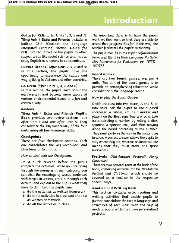 EXTRA and FRIENDS là một khóa học 5 cấp độ dành cho học sinh sơ cấp Tiếng Anh. Bộ sách theo chương trình giảng dạy Việt Nam và Khung Tham chiếu Chung Châu Âu về