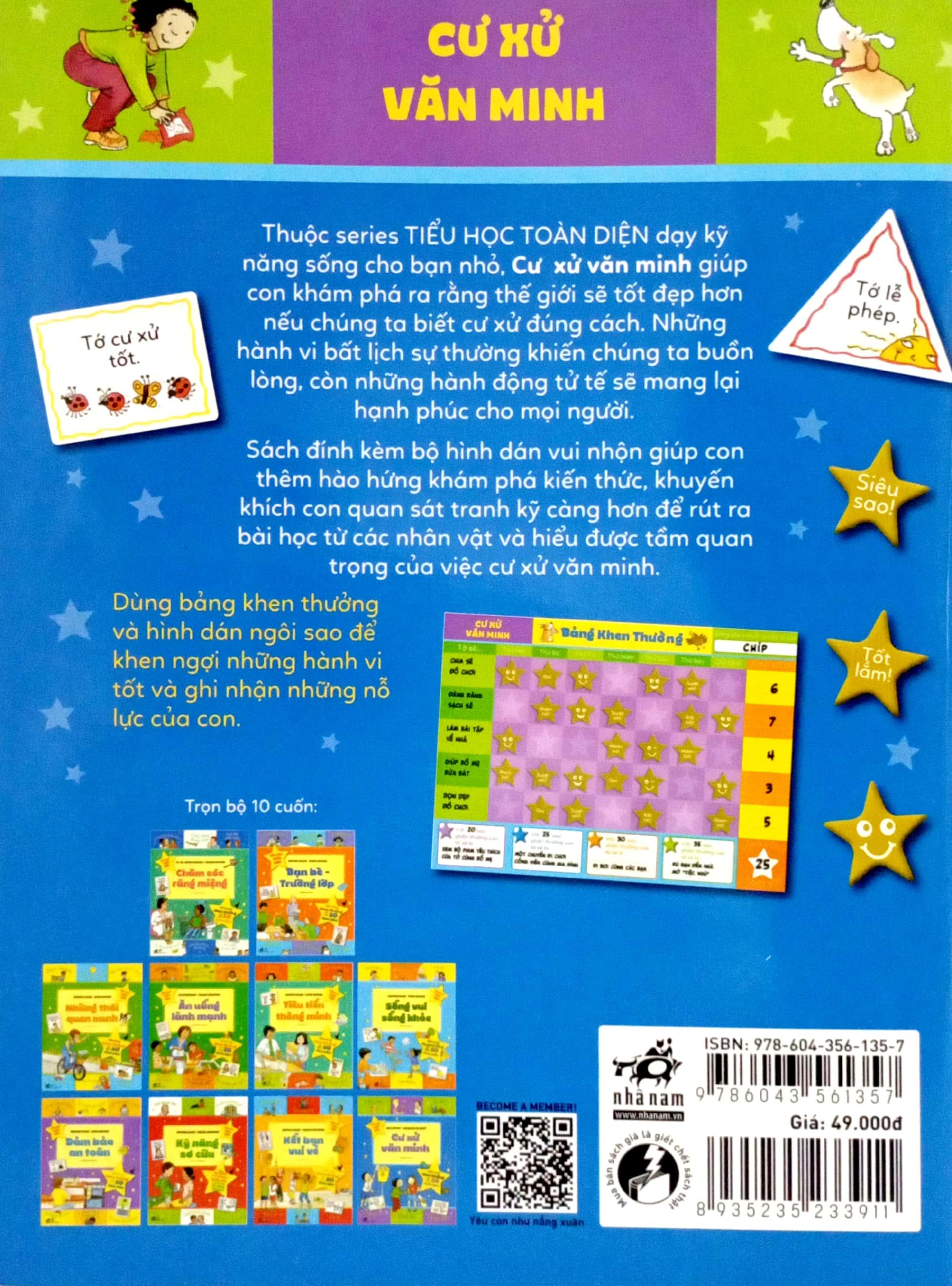 Mua tại TiktokThuộc series TIỂU HỌC TOÀN DIỆN dạy kỹ năng sống cho bạn nhỏ, Cư xử văn minh giúp con khám phá ra rằng thế giới sẽ tốt đẹp hơn nếu chúng ta biết cư xử đúng cách. Những hành vi bất lịch sự thường khiến chúng ta buồn lòng, còn những hành động tử tế sẽ mang lại hạnh phúc cho mọi người.
