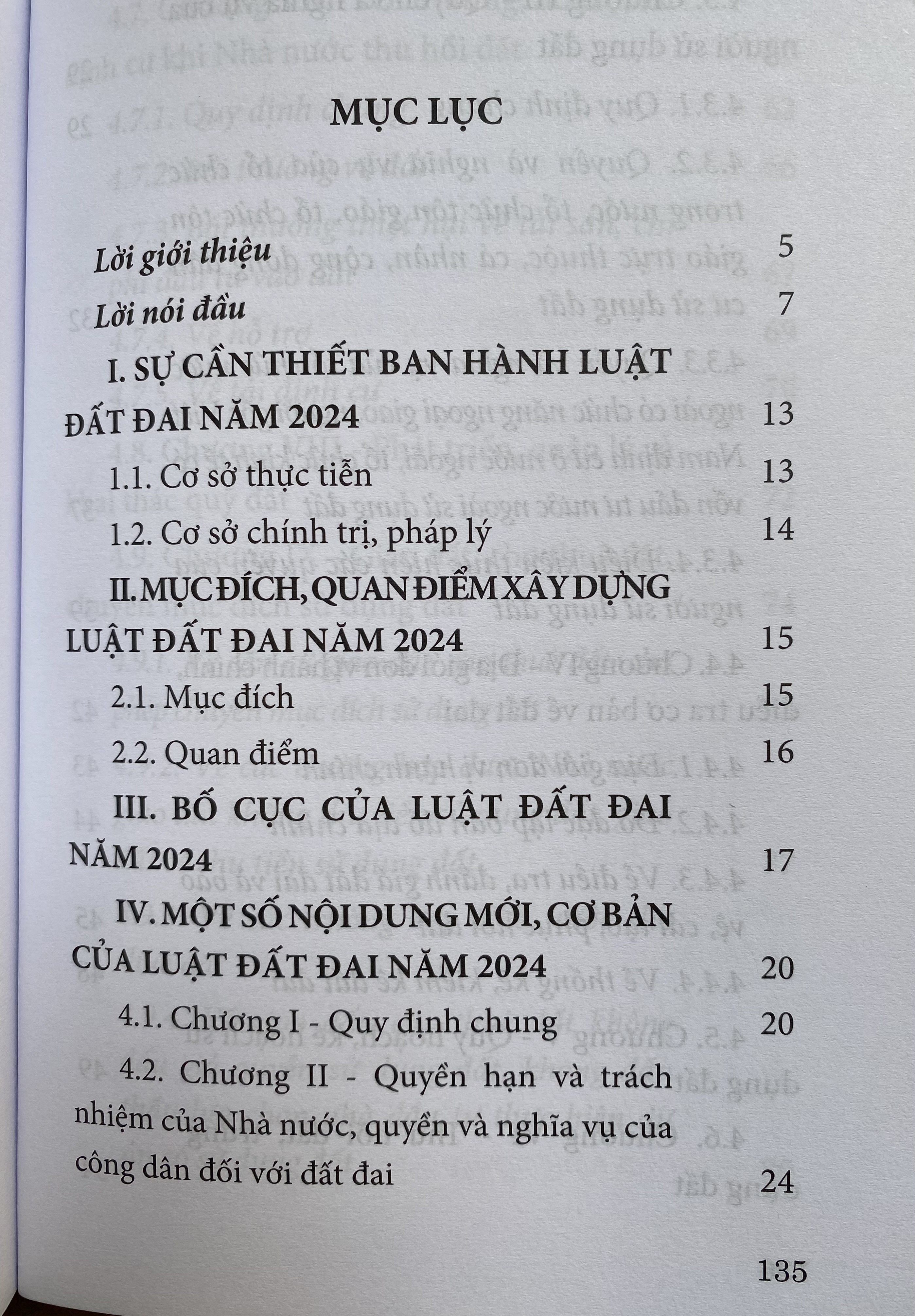 Luật Đất đai số 31/2024/QH15 được Quốc hội khóa XV thông qua ngày 18/01/2024. Luật Đất đai năm 2024 gồm 16 chương, 260 điều, trong đó sửa đổi, bổ sung 180 điều của Luật