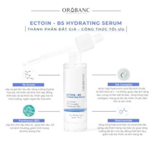✨Tinh chất cấp ẩm, căng bóng da Orobanc Ectoin B5 Hydrating serum 30mL